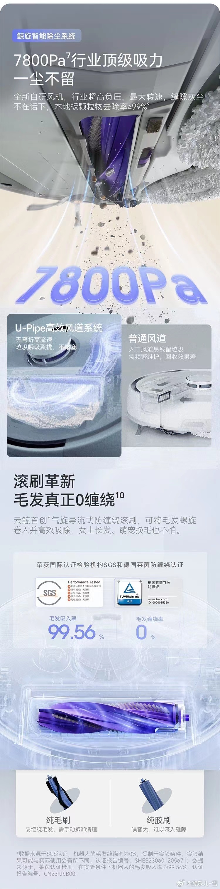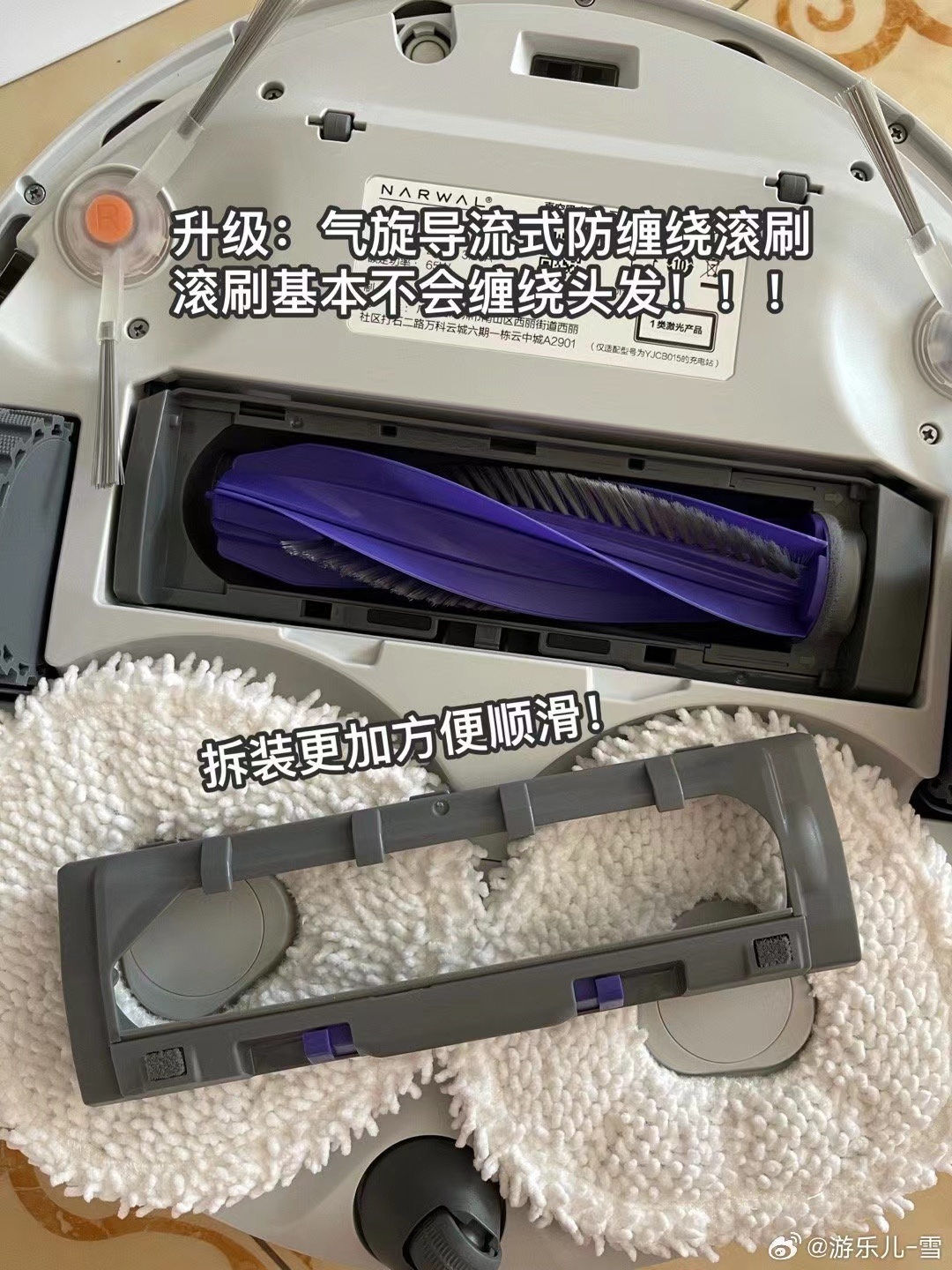 [心]升级一:气旋导流式防缠绕滚刷,滚刷基本不会缠绕头发。