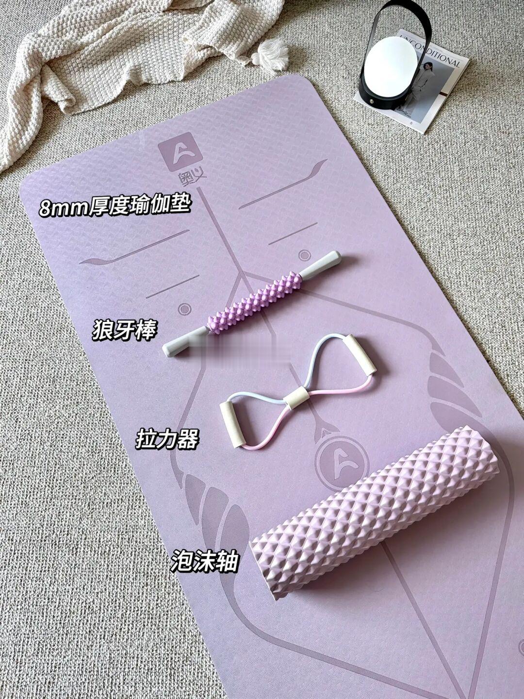 还带了狼牙棒、拉升器和泡沫轴,放松腿部,拉升背部,全都要~