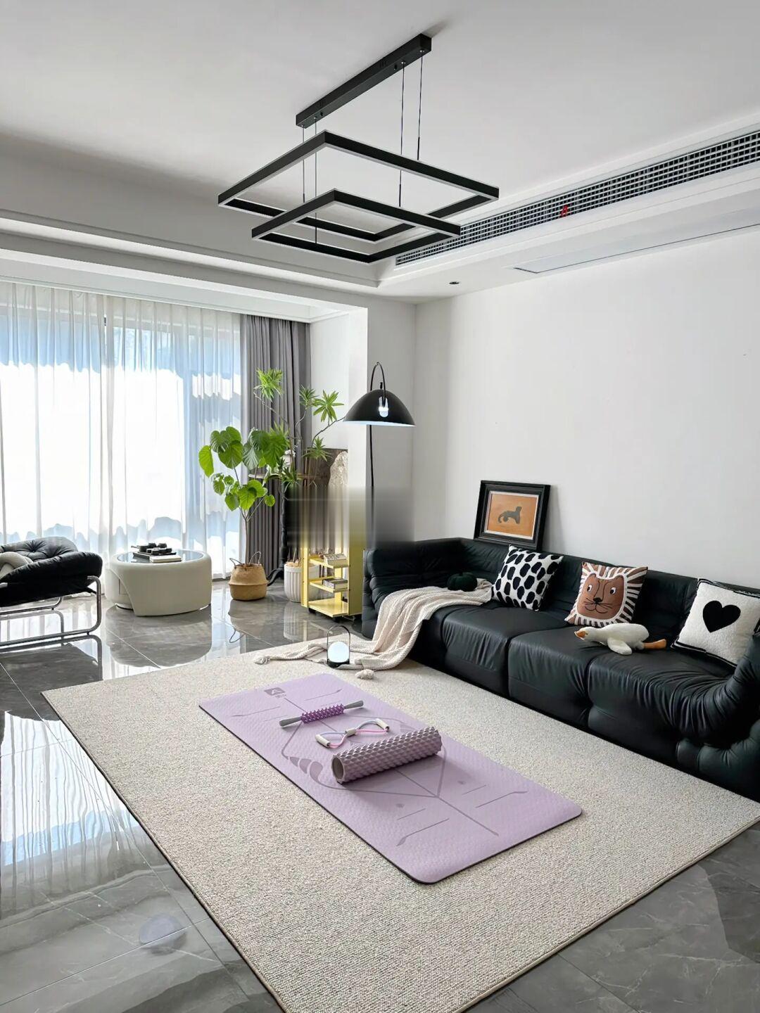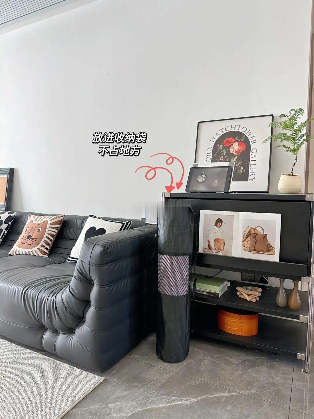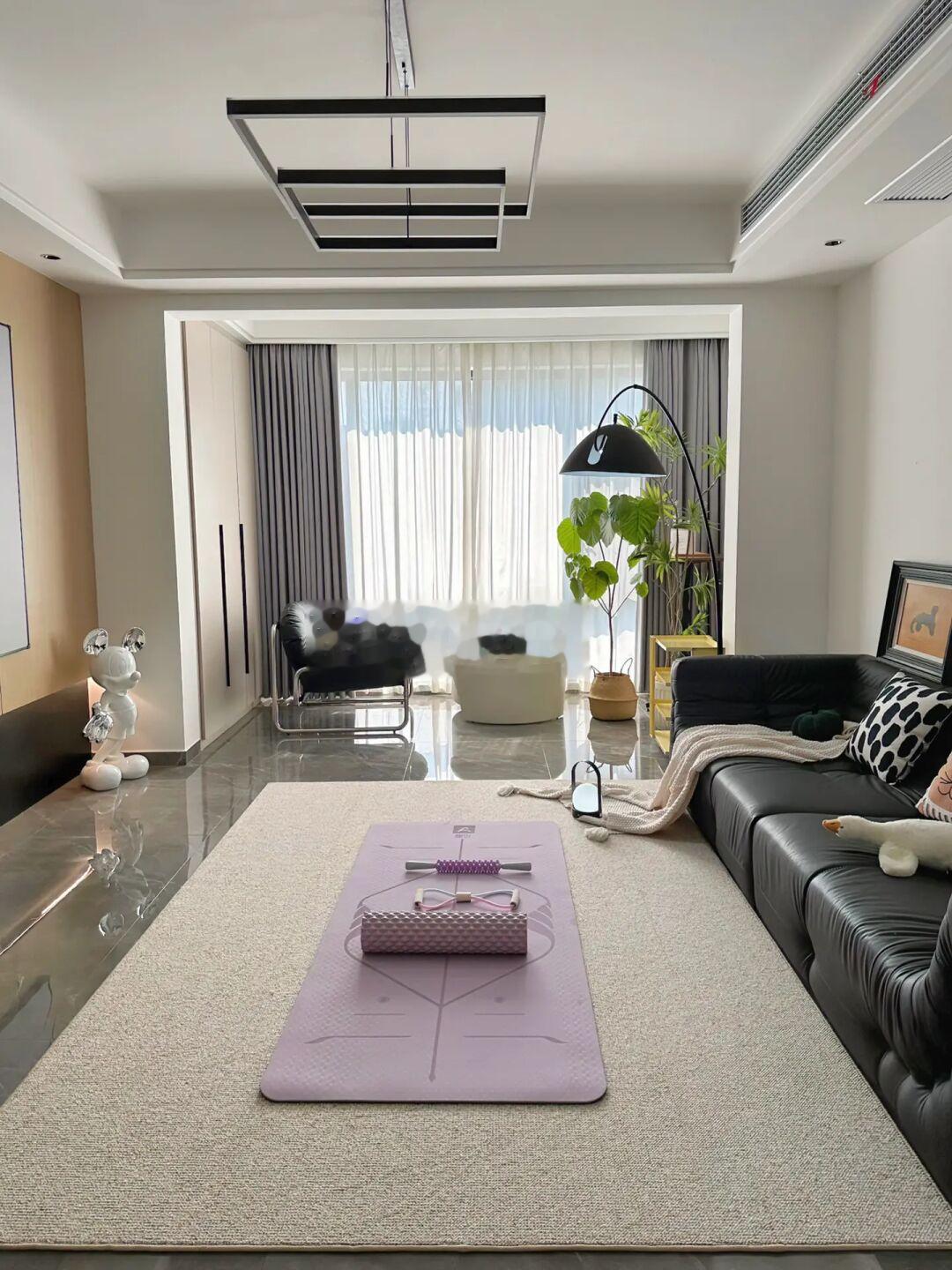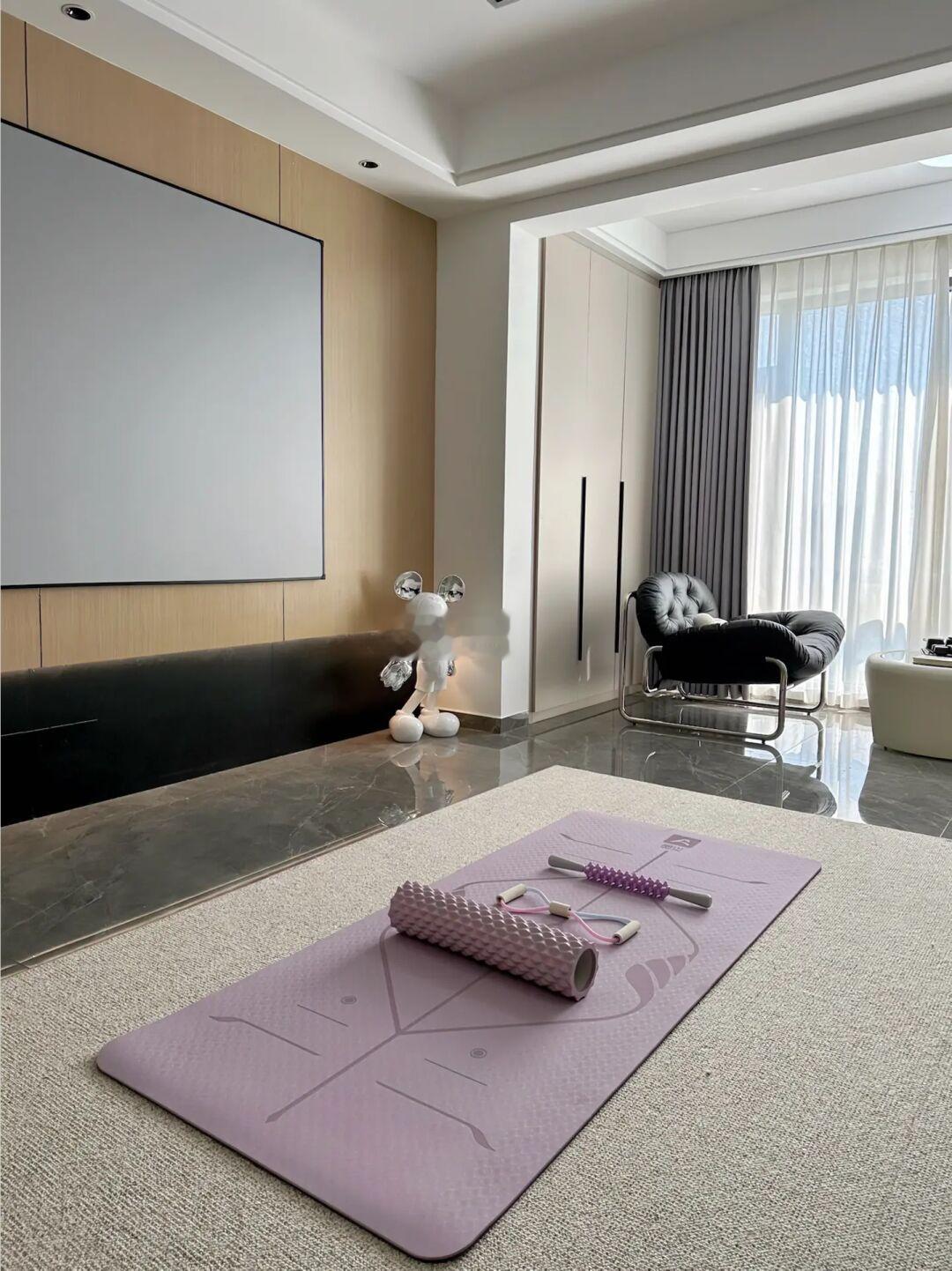 在大大的客厅里铺上8mm厚度的瑜伽垫