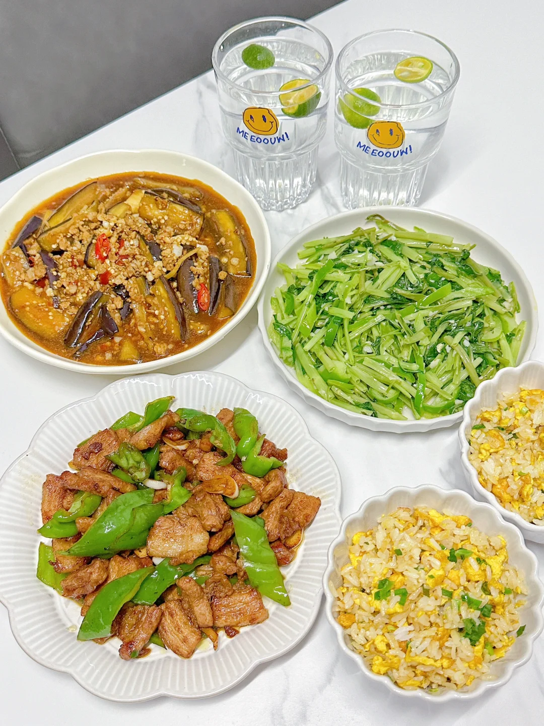 4️⃣小炒肉➕肉末茄子➕蒜泥空心菜