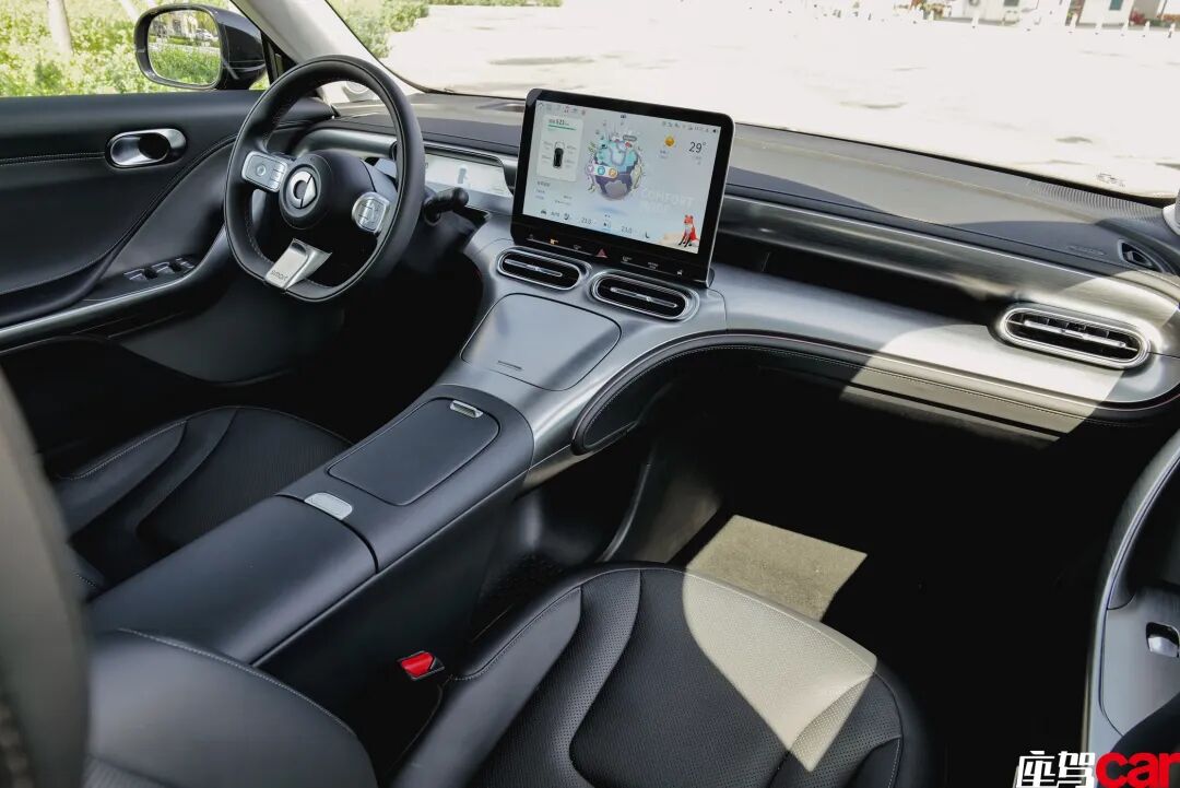 进入车内,“胶囊”设计元素仍然是无处不在地贯穿其中,展露出其童心的一面。前面提到,smart精灵1号经典焕新款提供了5种内饰风格,分别是天宇绿、揽夜黑、触感金、深空黑与闪电灰。每一种风格在车顶篷、仪表台、仪表台饰板、门板、座椅的颜色上都会有不同的组合,呈现出截然不同的座舱氛围。与老款相比,smart精灵1号的座舱豪华感升级明显,究其原因,就是皮质包覆的全面升级,它的门板包覆面积增加了1倍,副仪表板包覆面积更是原来的3.6倍,软包的增加毫无疑问会带来更加豪华的观感和更加温柔的触感,它长大了,会考虑别人的感受了。作为有着奔驰基因的产品来说,氛围灯怎么可能单调?先前的64色完全不足以呈现出它的灵动,所以经典焕新款将其升级到了S级同款的256色,并且提供20种个性化主题可供随时切换。用官方的话来说,在你心情不好或者心情超好的时候,总有一款氛围灯的颜色能够缓解你的情绪或增强你的开心程度。另外,真皮多功能方向盘新增的加热功能别看只是一个小小的开关,对于北方冬天用车来讲那是如救世主般的存在。12.8英寸悬浮式中控屏采用玩乐感十足的“灵感星球”界面设计,车主还可选择壁纸桌面或导航桌面,以满足不同的用车需求。小狐狸形象的虚拟精灵助手依然动作丰富,可爱十足。升级之处在于,高德地图内新增了红绿灯倒计时以及绿波车速引导功能,进一步降低了车主的手机依赖性。在这样一款车内,手机支架的出现会是非常突兀且破坏座舱美感的。