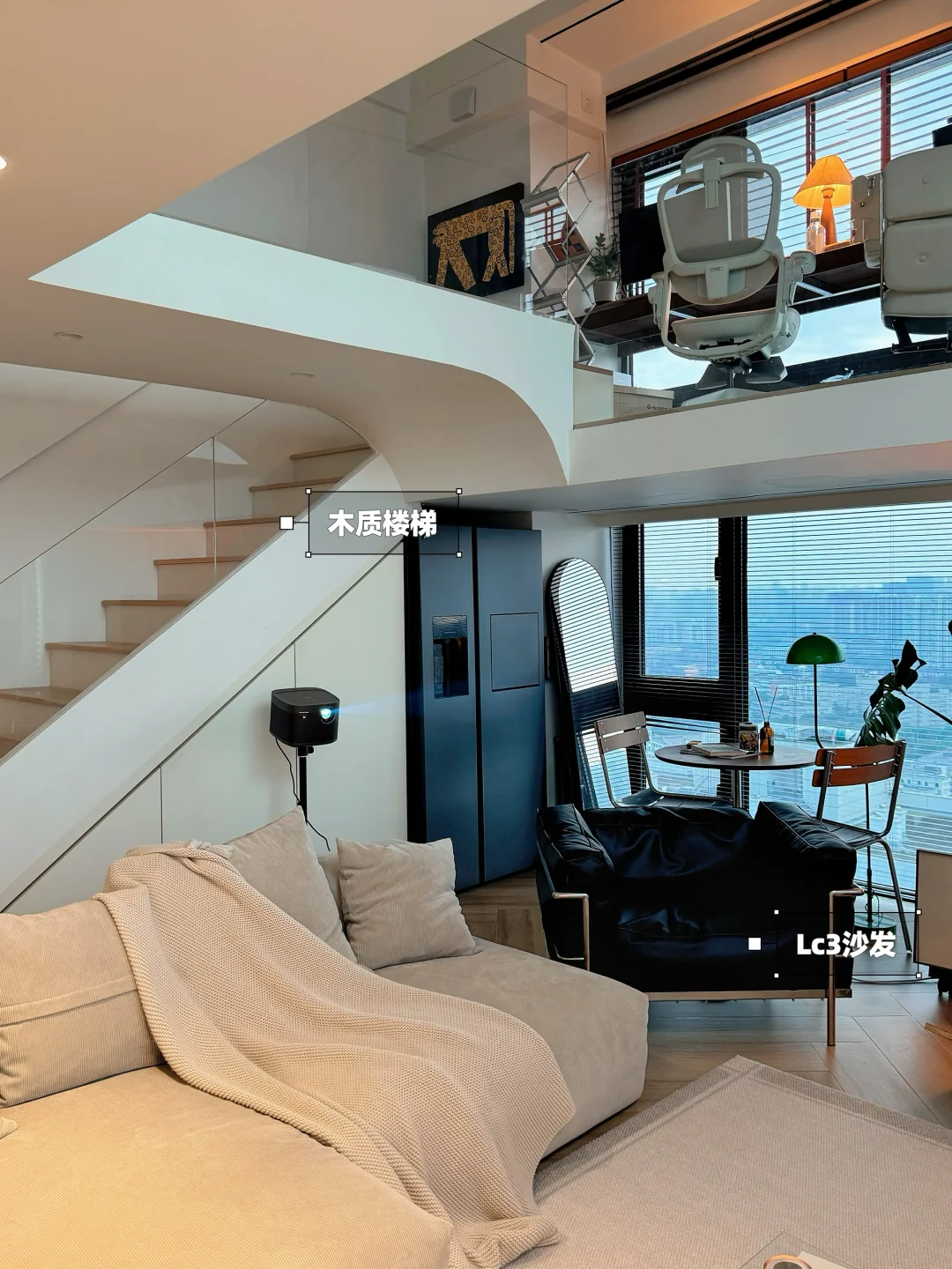 ▪️套内实际面积真的不大,只有40平米。因为没有做隔墙,都是开放空间,再加上双面采光,让整个家看起来就很通透。还好房子的层高有4.9米。所以做了双层结构。