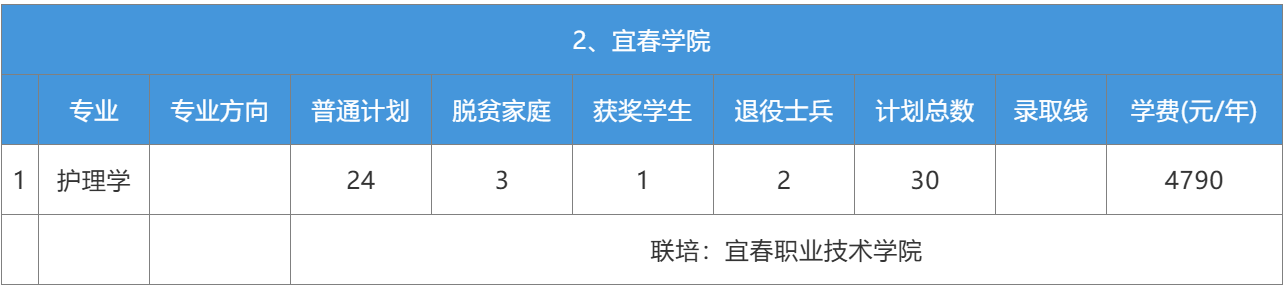 下表为宜春学院专升本医学类招生计划及学费汇总,仅有护理学1个专业招生: