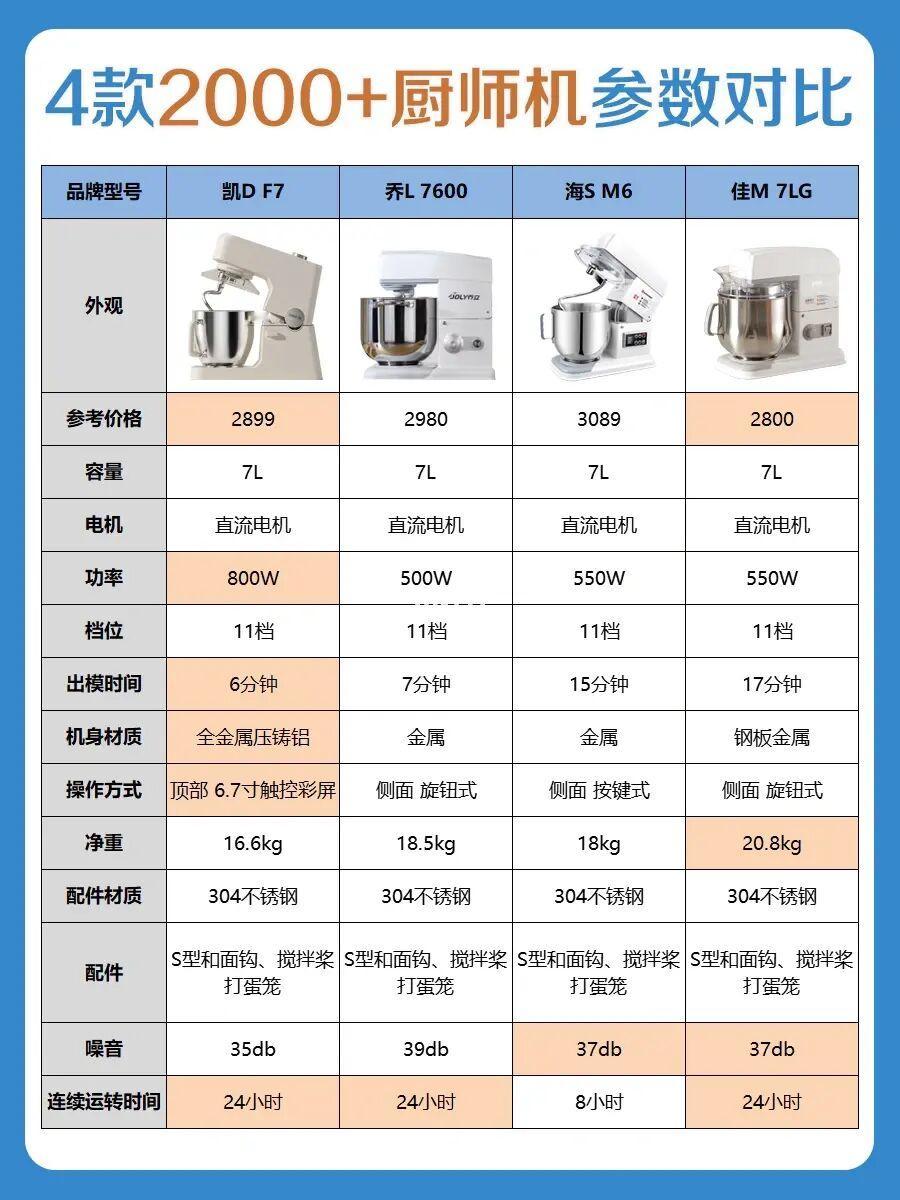 ✅4款2023年热门厨师机:凯度 F7、乔立 7600 、海氏 M6、佳麦 7LG评测,具体可看图。