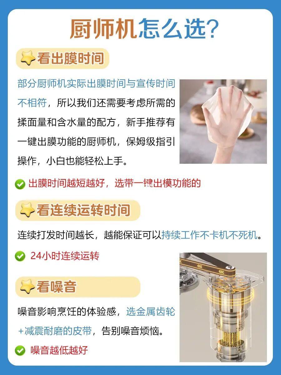 部分厨师机实际出膜时间与宣传不相符,我们需要考虑操面量和含水量配方,新手推荐有一键出膜功能的,保姆级指引操作,小白也能轻松上手。