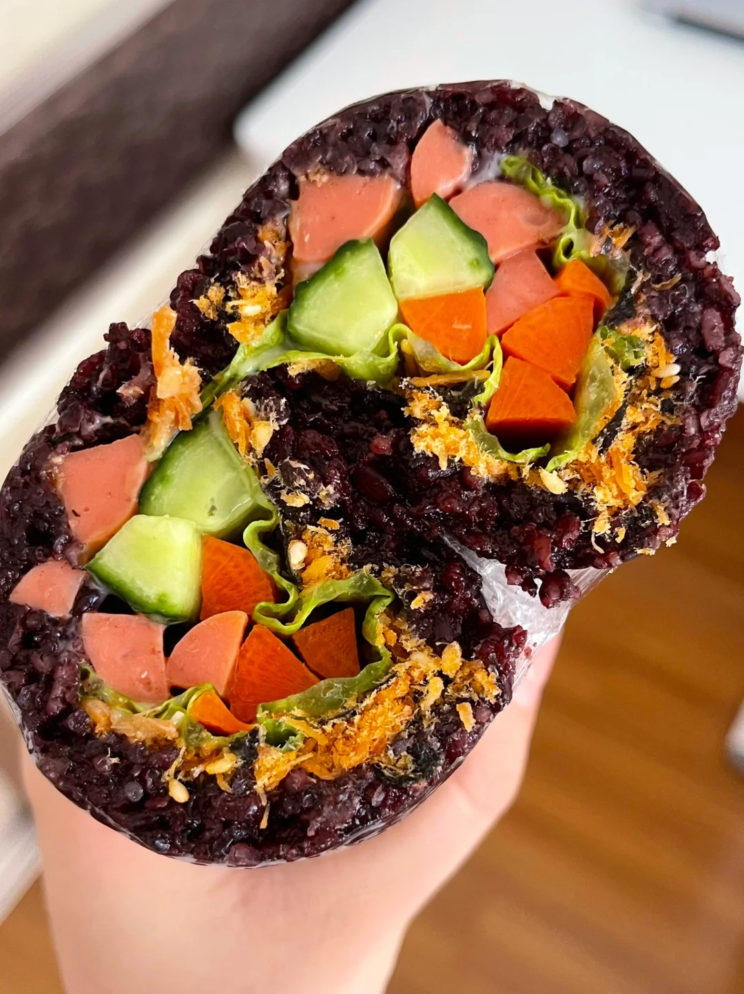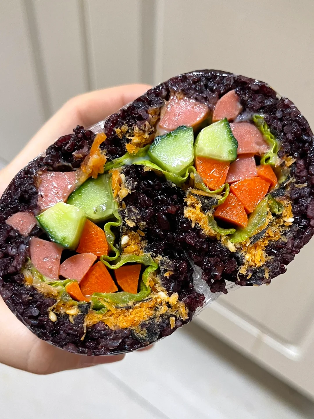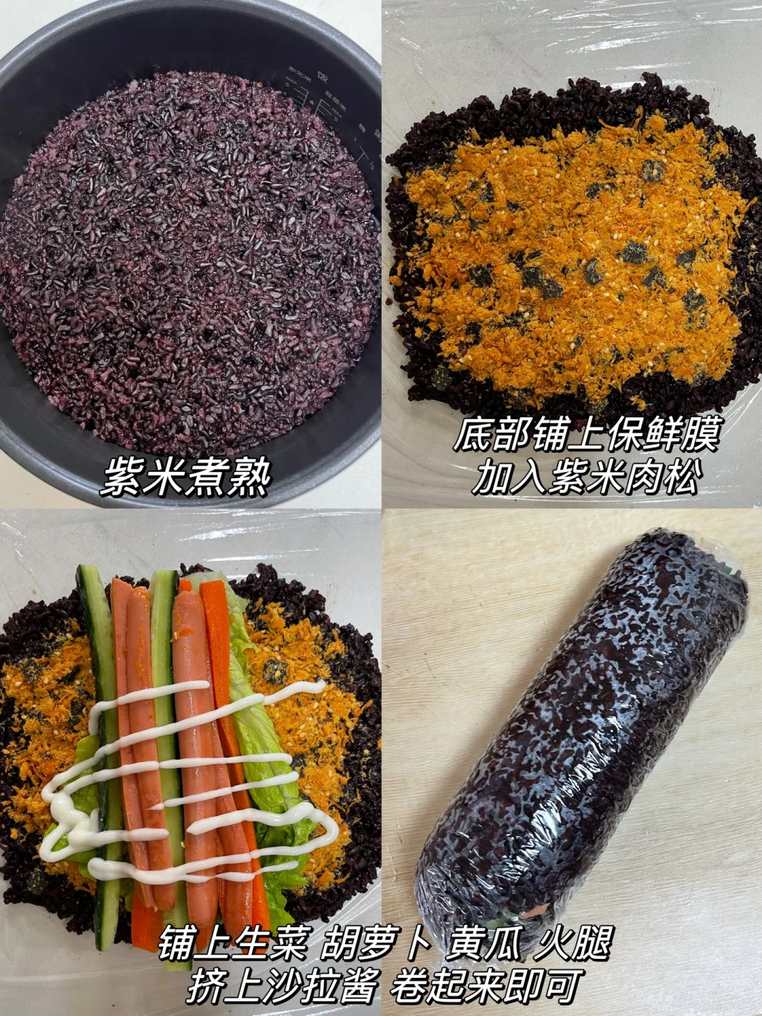 巨巨巨好吃的紫米肉松饭团!! 软糯的紫米 脆爽的蔬菜 一口下去有肉有菜太满足啦~ 料贼多!口感巨丰富!! 饱腹感十足 真的超顶饿… - 食材:紫米 生菜 黄瓜 胡萝卜 生菜 肉松 步骤如图哦 食材常见做法超简单~ 姐妹们赶紧去试试!!