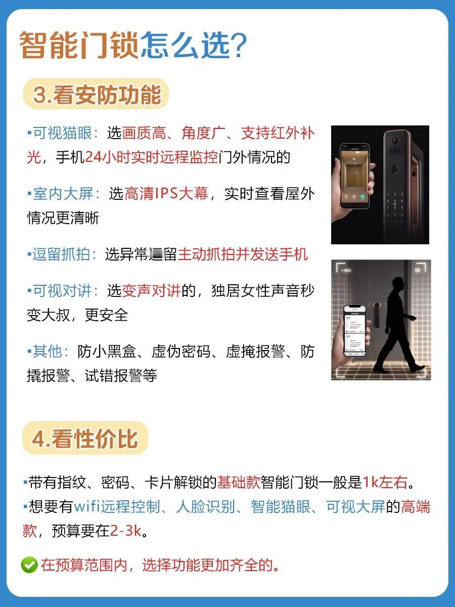😎最后,建议大家选智能门锁的时候先做好预算💰,然后按上面攻略选择就可以了!尤其对于智能家居感兴趣的,智能门锁也是入门级单品。