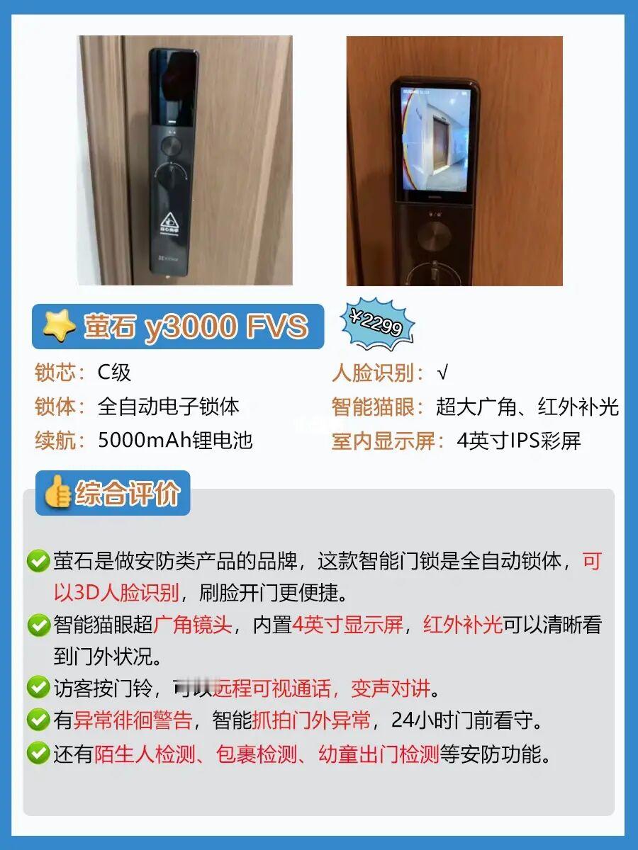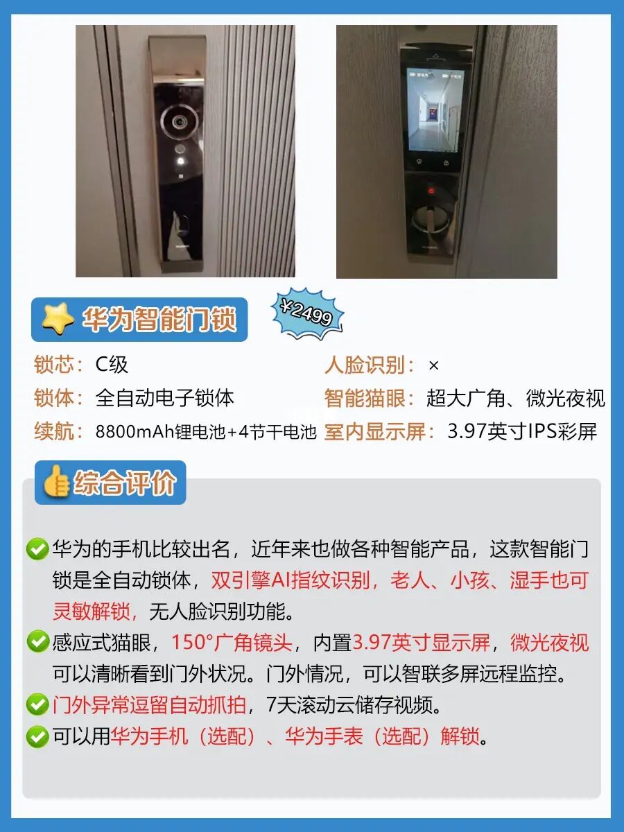 ✨想要有wifi远程控制、人脸识别、智能猫眼、可视大屏的高端款,预算要在2-3k。