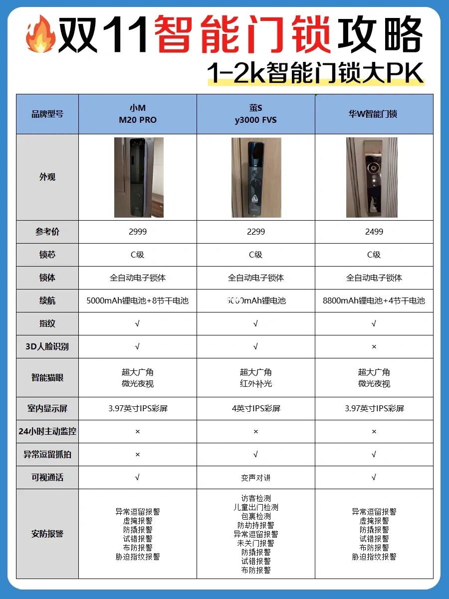 智能门锁安全、方便,双十一快到了,很多人都在蹲一款实用的智能门锁,😉今天我整理了高性价比智能门锁的选购攻略和6️⃣款热门机型对比测评,一起来看看吧~