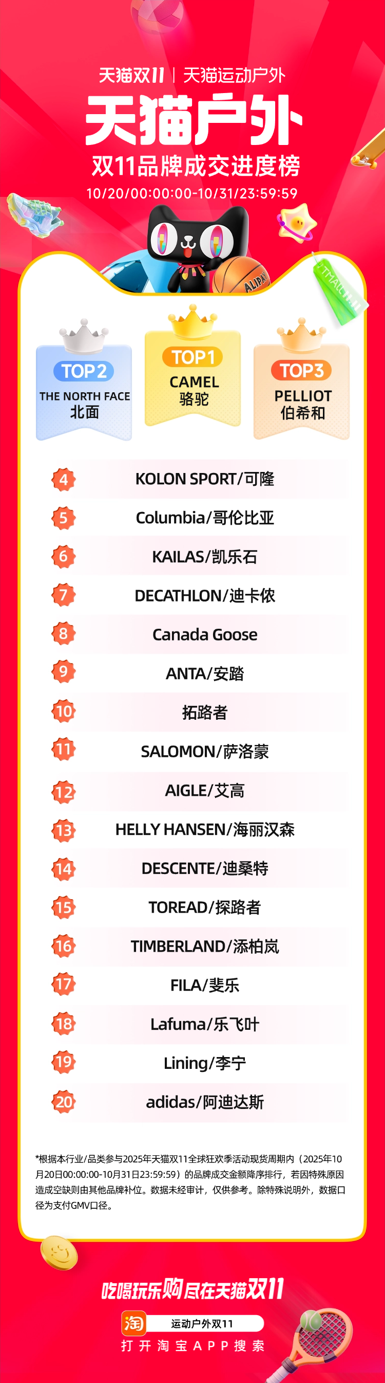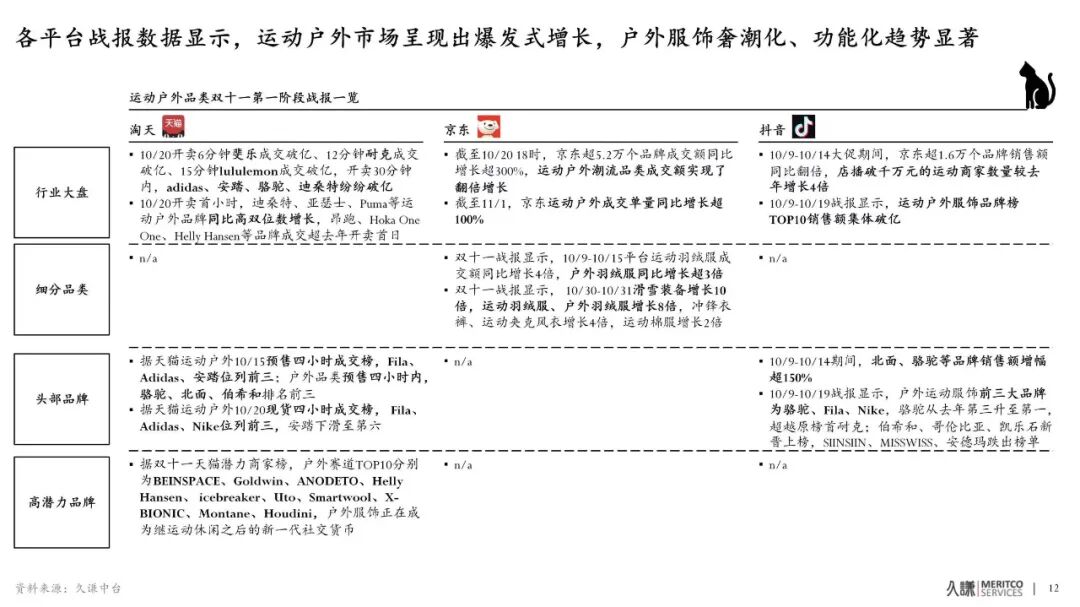 今年双11期间,天猫户外鞋服千万级单品中,新品占比超过50%。凯乐石、骆驼的新款羽绒服,都是开售首阶段就成了爆款。