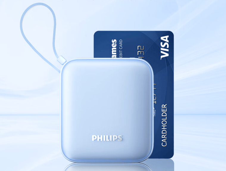 这款飞利浦迷你充电宝主打“轻量实用”。10000mAh的容量属于刚好够用的类型,日常通勤、短途出行都能满足。机身做得相当薄,塞进裤兜或小包都不突兀,自带Type-C与Lightning双头线,对苹果和安卓用户都比较友好。磁吸收纳的设计确实方便,线不会乱也不容易丢。不过塑料外壳略显轻薄,手感上不如金属款扎实。实测22.5W快充给iPhone充电速度挺理想,半小时能回七成左右电,但长时间充会有轻微发热,总体属于小巧高效型。