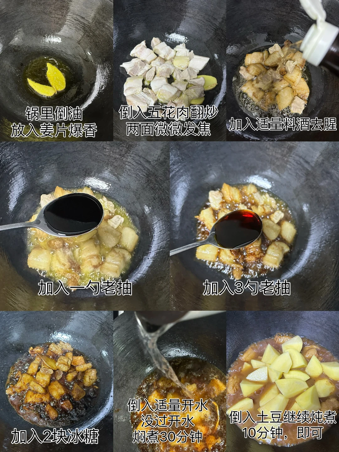 食材:五花肉 土豆 生姜 冰糖 小葱