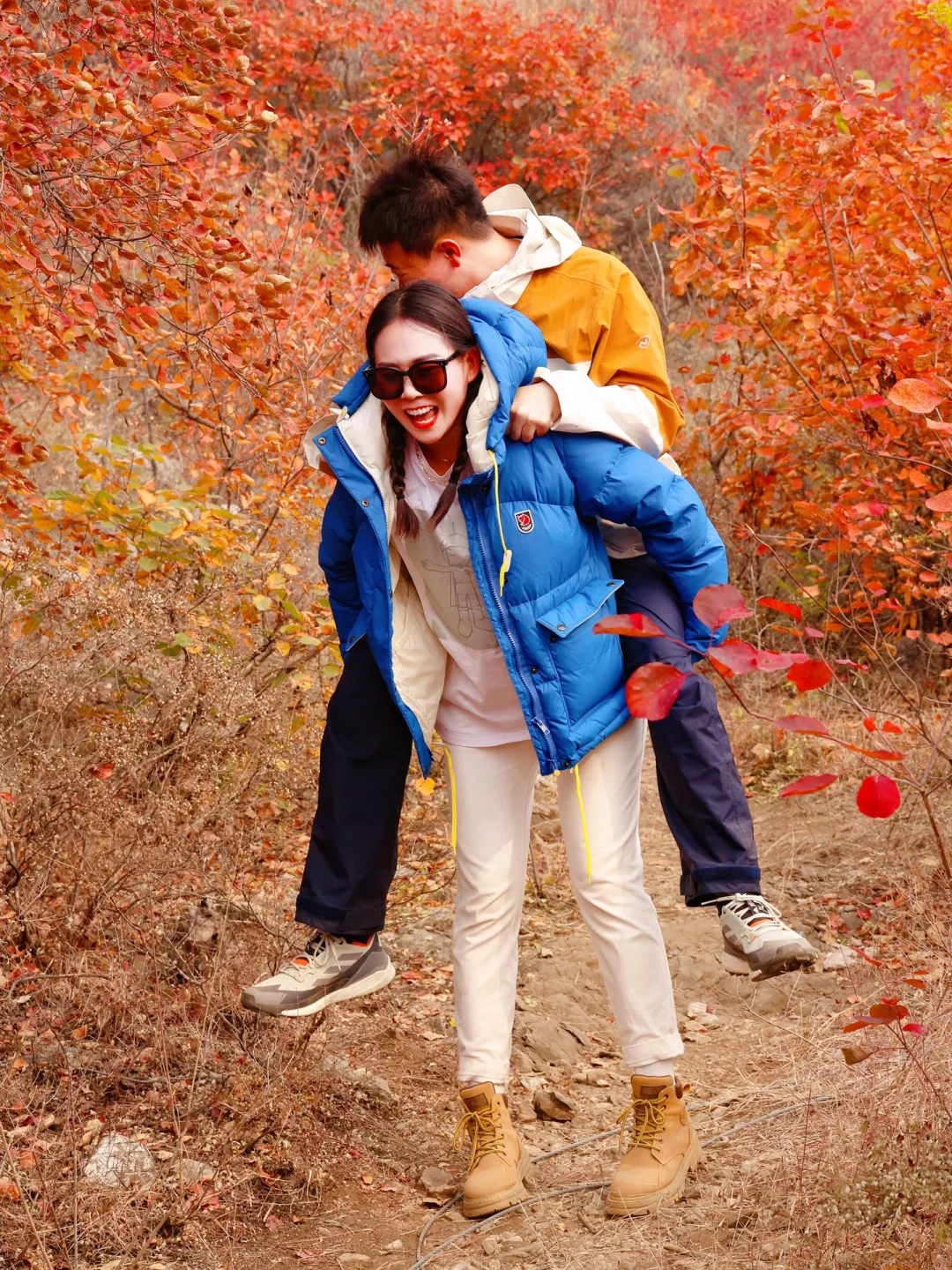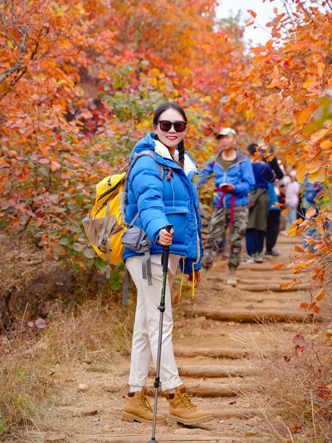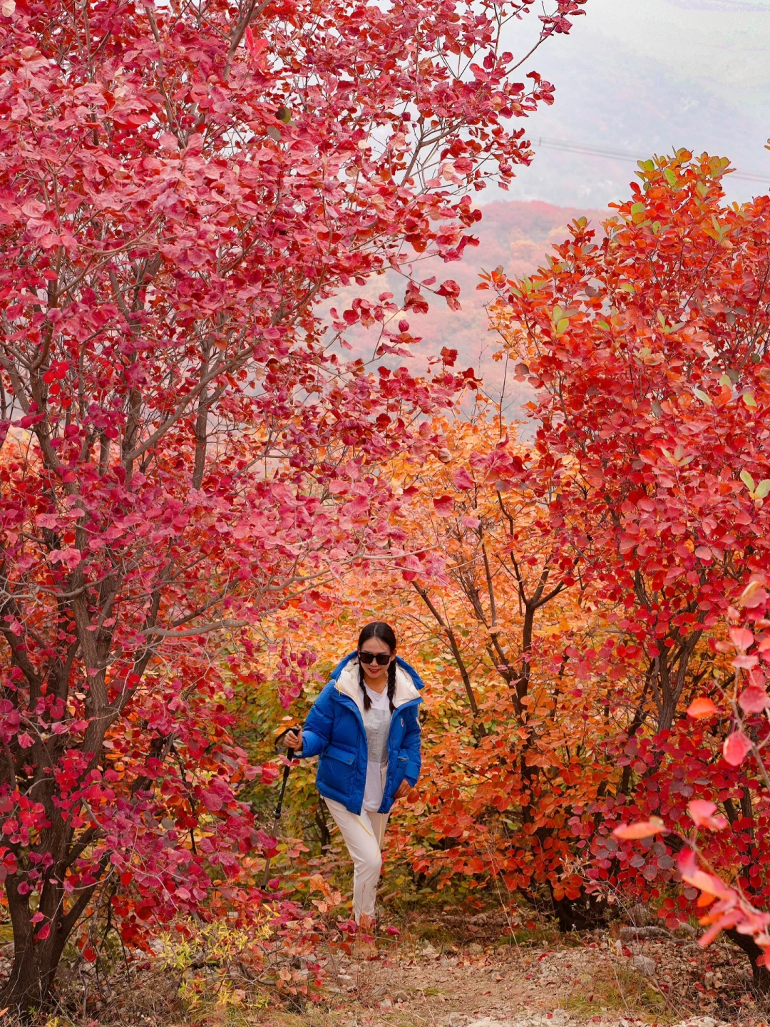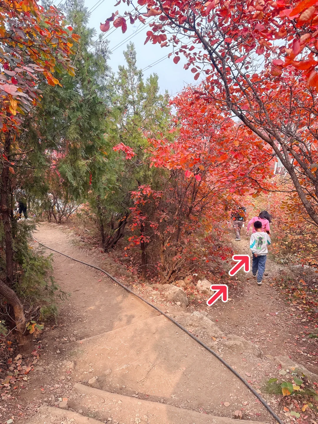 沿着步道走一路都是风景,🈵️山的红黄栌犹如秋日油画🖼️,真的非常震撼,走到图14这个口时,可以沿着右侧土路上去,不要怀疑,不会走错,这里的红叶非常漂亮,无人机航拍yyds,一定要到山顶,山顶风景拍照yyds