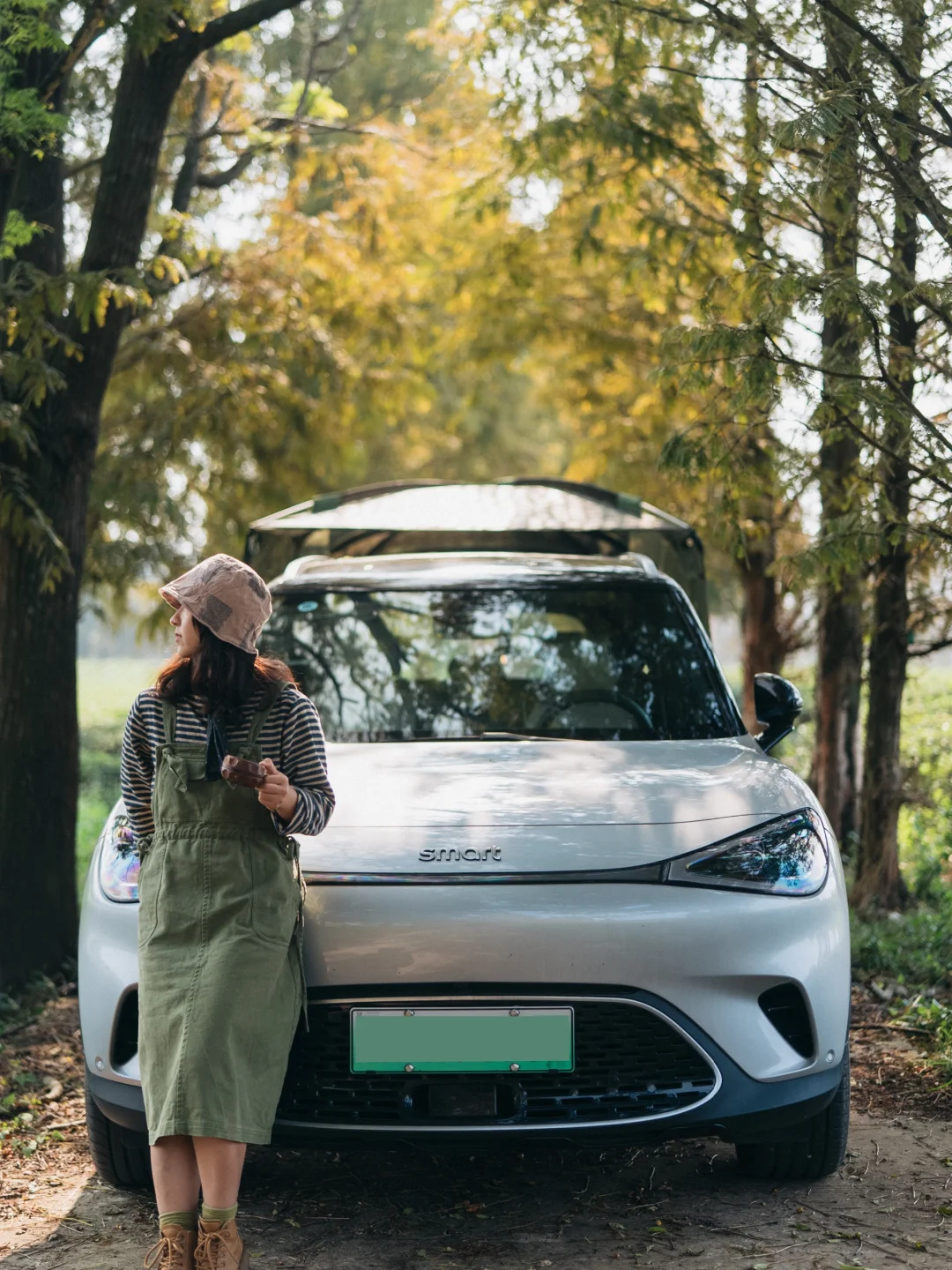 不方便下地钉,所以用我的smart搭配了车尾帐使用,包裹感很好,也和这里的环境特别融合,smart高颜值的外观,单独拍摄也很出片,hh