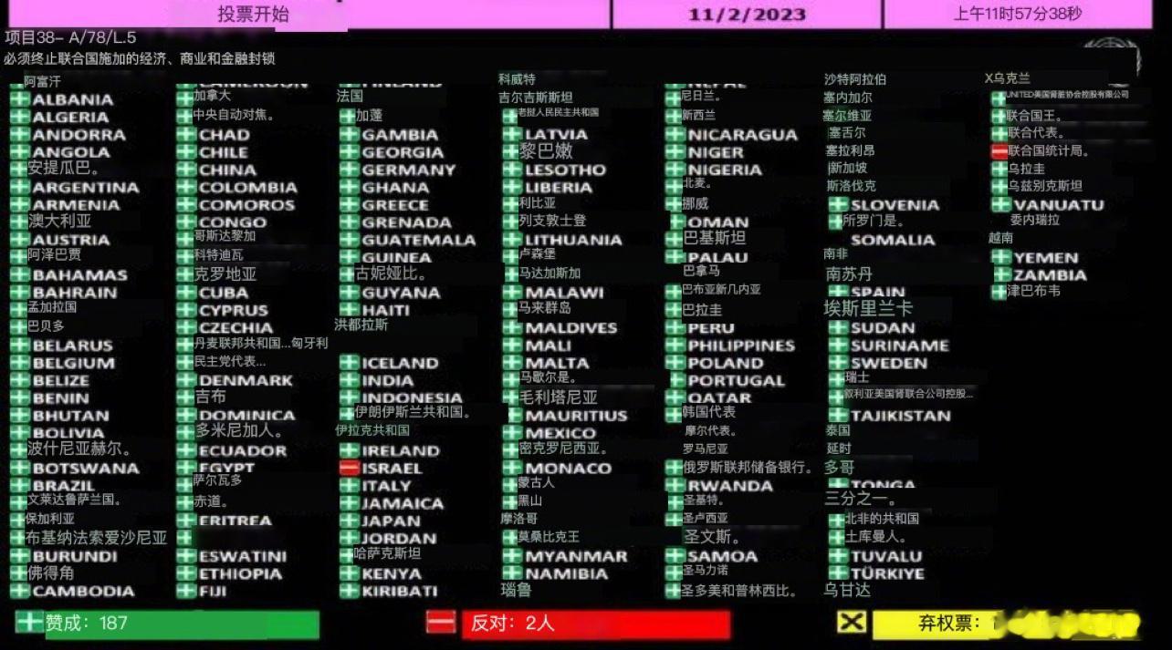 #联大187票同意美国以色列反对#