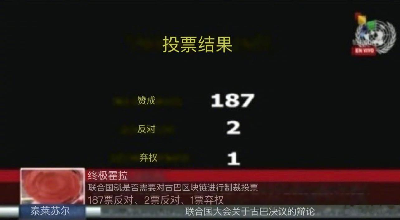 11月2日,联合国连续31次通过决议敦促美国终止对古巴封锁。189国参与投票185国赞成,美国和以色列反对。