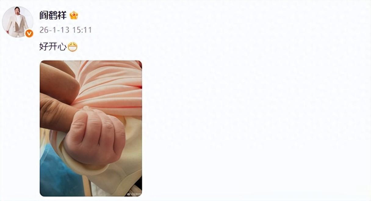 1月13日,德云社阎鹤祥当爸爸了,与孩子的牵手照被晒。