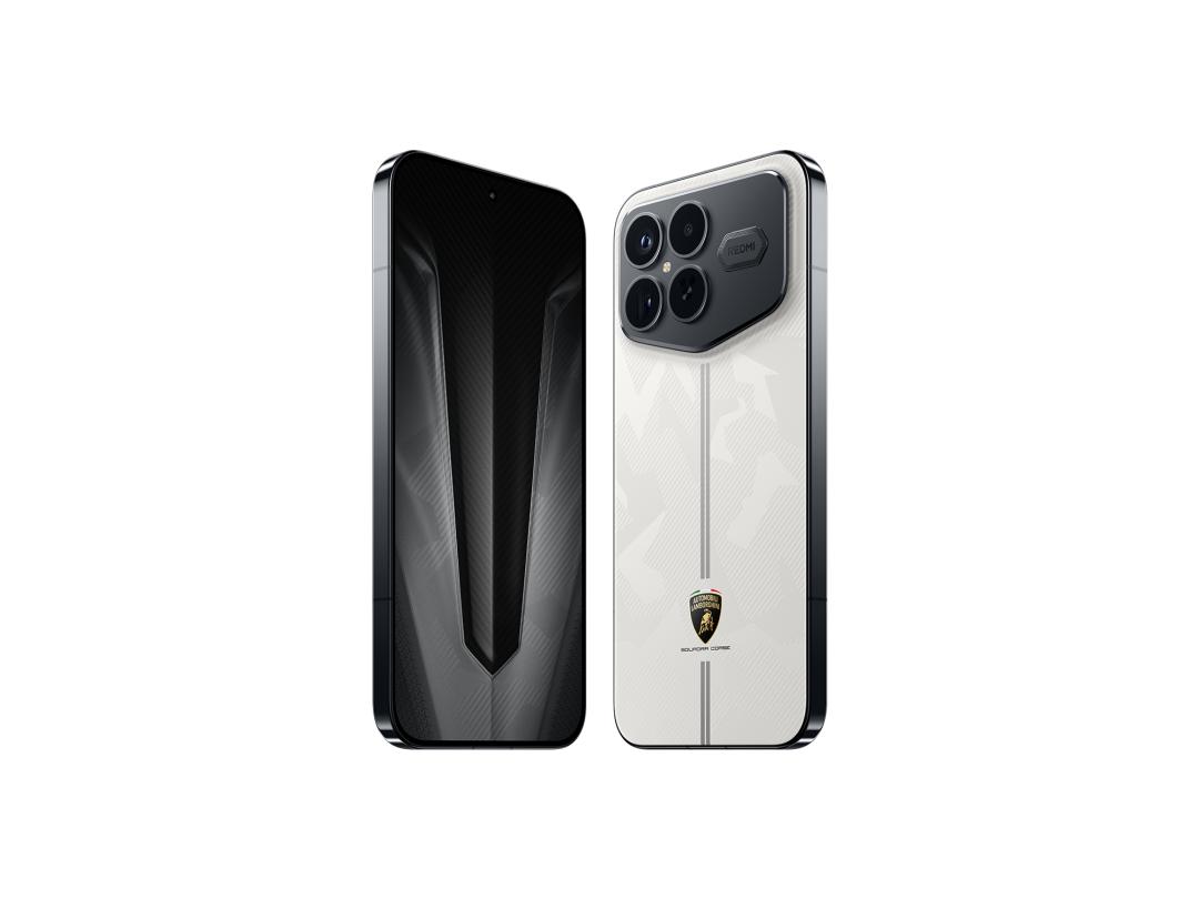 REDMI K90 Pro Max冠军版的设计灵感源于兰博基尼推出的首款混合动力赛车原型车—— 兰博基尼SC63 ,代表了极致马力和空气动力学的完美结合。手机以兰博基尼标志性的Bianco Alpi(白色)为底色,通过精湛工艺还原实车涂装的凌厉纹路,搭配兰博基尼汽车 SQUADRA CORSE 盾牌标识,尽显性能和动感。相机Deco借鉴了赛车前部大胆的线条造型,与贯穿式的赛车运动腰线组成“Y”型视觉元素,呼应了兰博基尼赛车标志性的设计美学。此外,手机包装盒、手机壳、充电器、卡针和手机主题壁纸也都深度定制,处处彰显赛道基因。