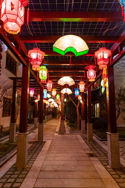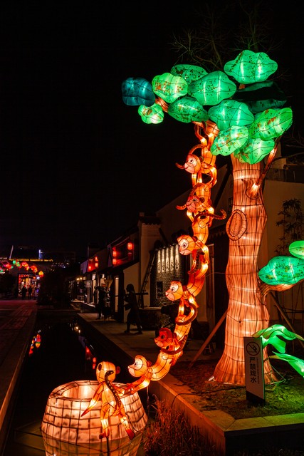 在石路万象天地,现代感十足的彩灯与商业综合体完美融合;长船湾青年码头则利用工业遗址空间,打造出别具一格的光影艺术;虎丘景区作为苏州地标,其灯饰布置更是将古典园林之美与灯光艺术相结合。