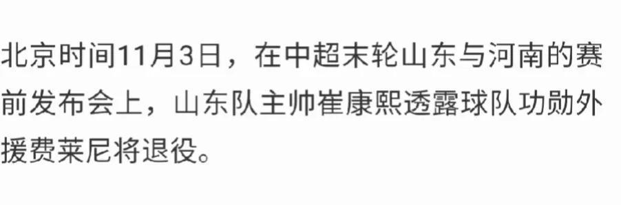 费莱尼退役!山东泰山队发布与河南队赛前海报,主题为永远的队长,再这场比赛乐部将在赛前为队长费莱尼举行告别仪式。在今天下午举行的赛前发布会上,崔康熙指导透露费莱尼将退役,表示有些遗憾,到期会尊重他的想法。祝福费莱尼!#山东鲁能# #中超##山东泰山将为费莱尼办告别仪式#