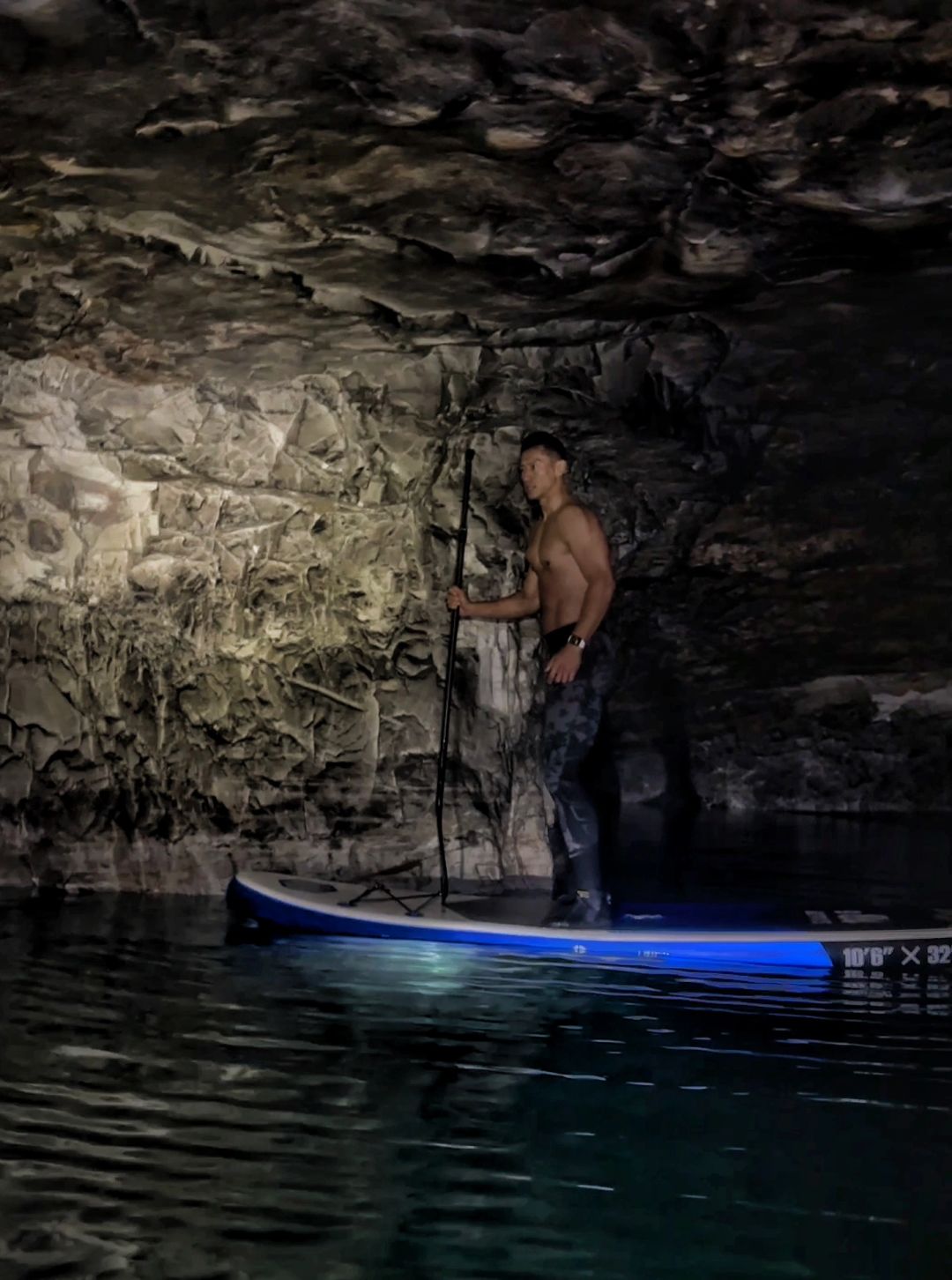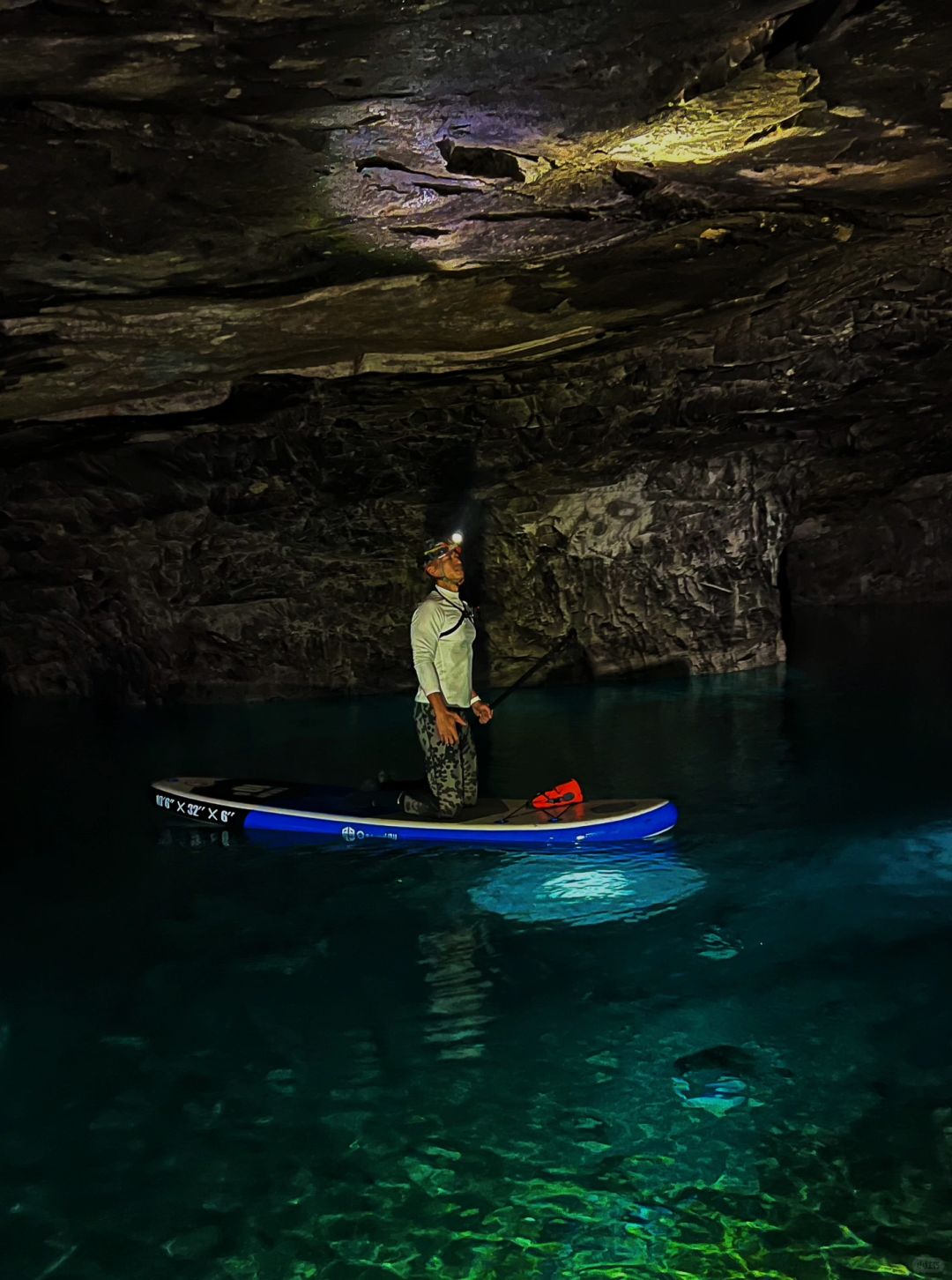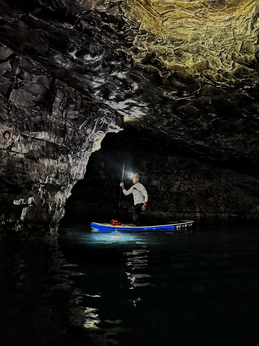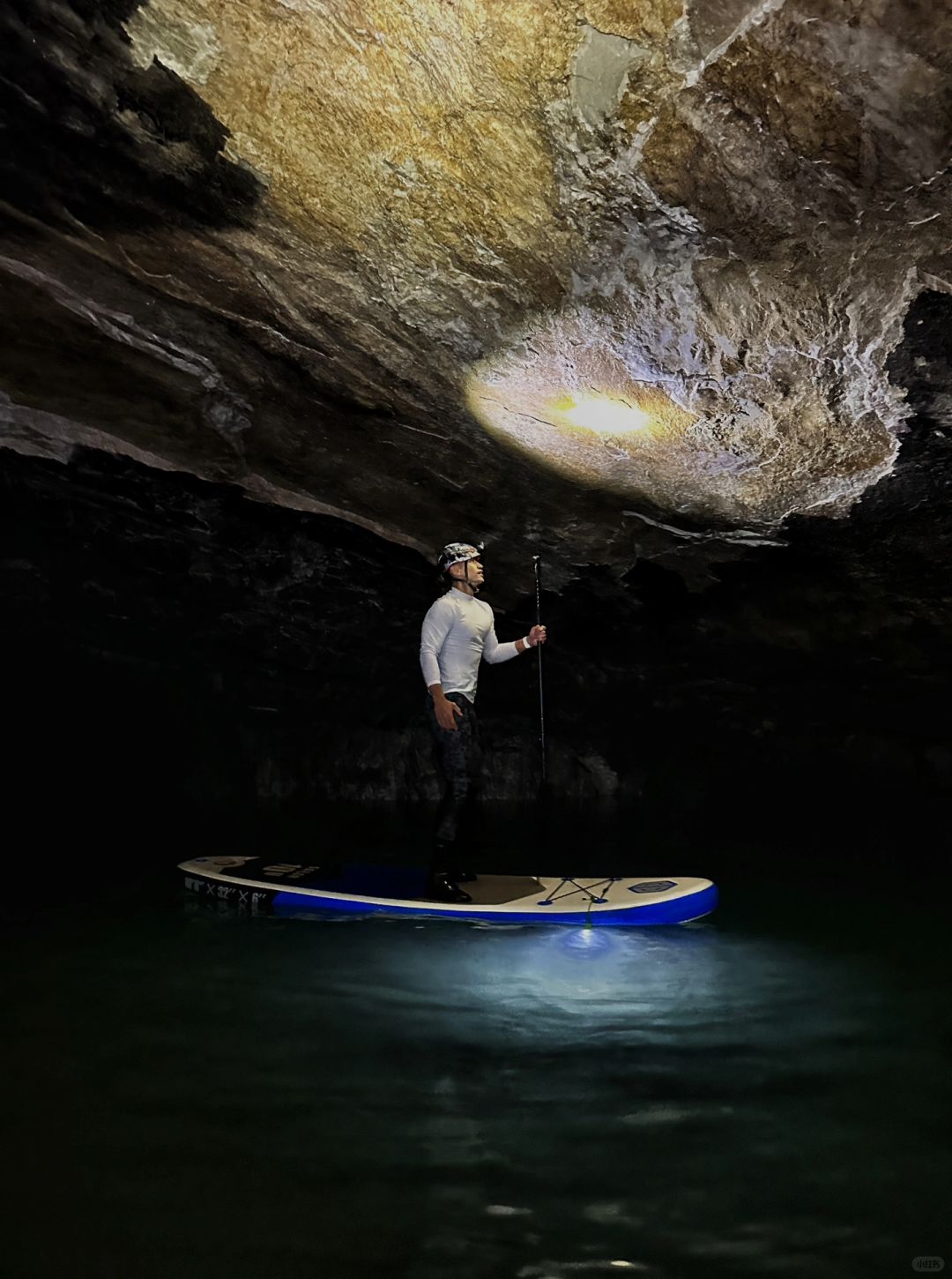 11月初 聚仙洞里的暗河水位目前刚刚好,适合浆板行进,河水清澈见底,图片中有几张水有点混,是因为我,后来落水了[微笑R]