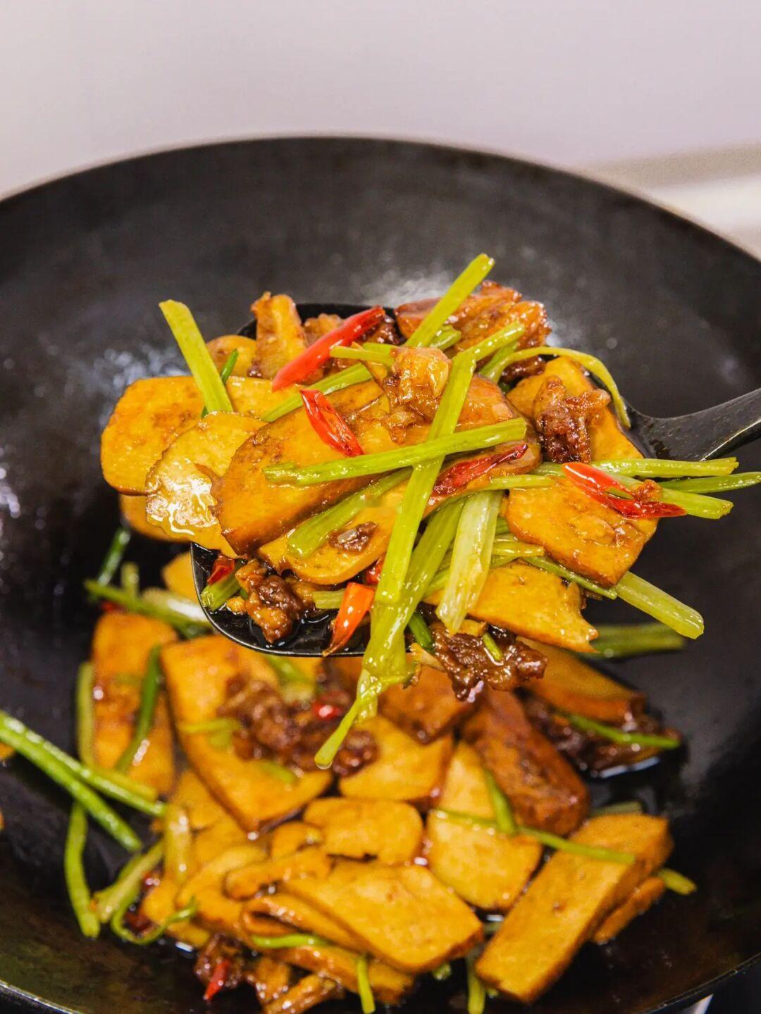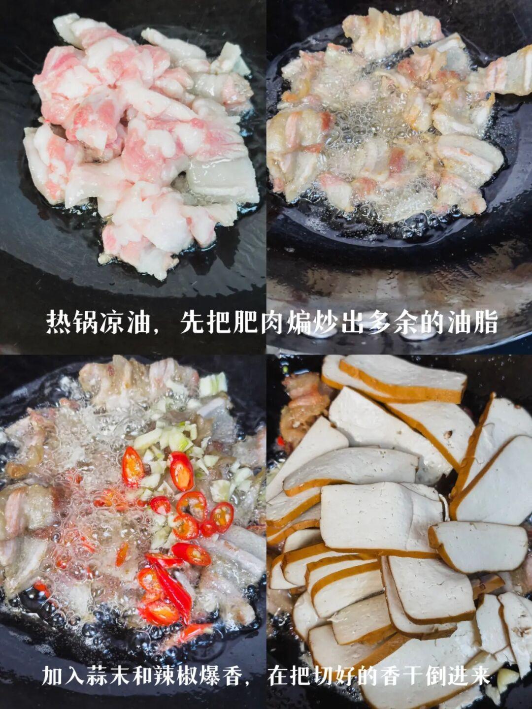 妈呀!真的好好吃好下饭啊!!!盖饭真的绝绝子! 🌈🌈🌈食材: 西芹、香干、小米椒、大蒜 🥘🥘🥘做法: 1.把肥肉煸炒出多余的油脂,加入蒜末小米椒爆香 2.倒入香干翻炒,加入生抽老抽蚝油盐鸡精调味上色 3.最后下芹菜翻炒至断生,翻炒均匀即可出锅。