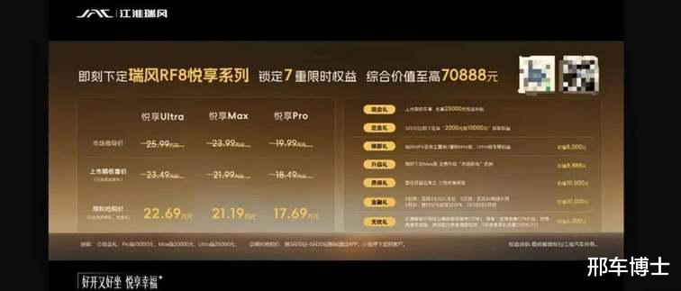 3月28日,合肥,一场以“悦享每一程”为主题的瑞风用户之夜即将启幕。在这个瑞风品牌成立25周年的特殊节点,全新瑞风RF8悦享系列正式上市。瑞风RF8悦享系列迎来正式上市,新车共推出3款车型,售价区间为19.99-25.99万元,限时抢购价17.69-22.69。车辆定位为中大型MPV,搭载插电式混合动力系统,CLTC纯电续航里程150km,综合续航1150km。
