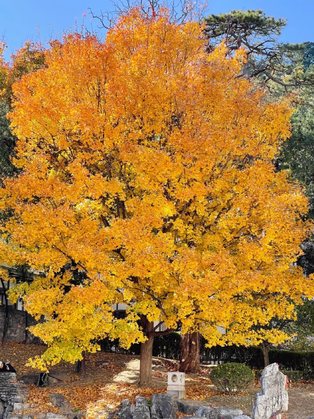 在香山公园里面,湖中心超大的银杏、五角枫、松树🌲可好看了,还有可爱的天鹅🦢鸳鸯