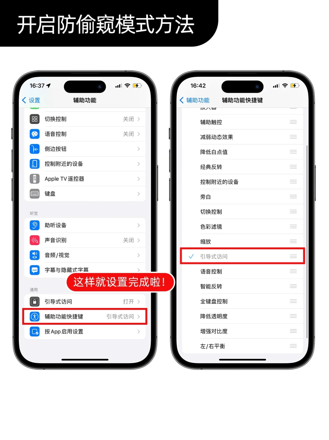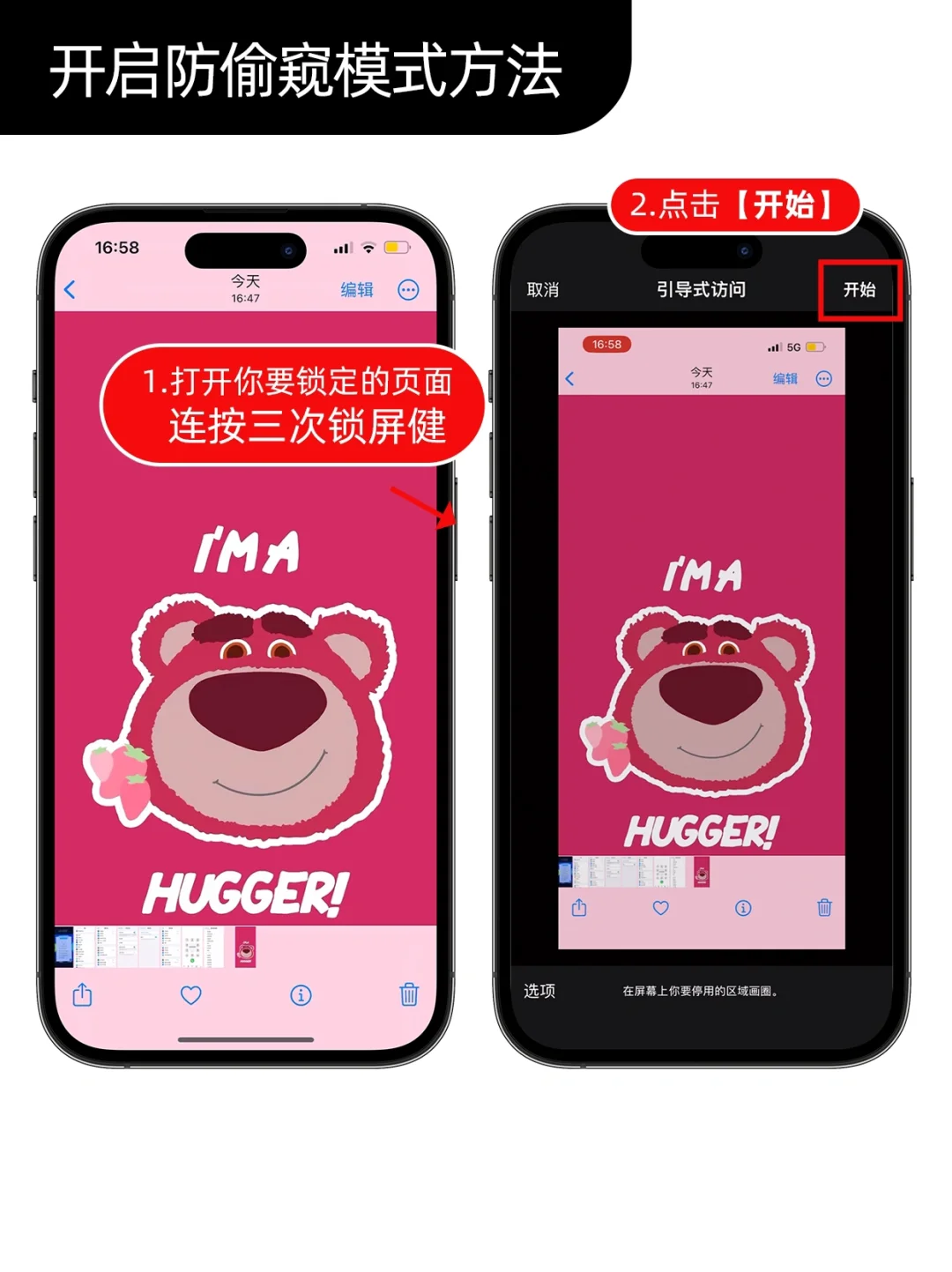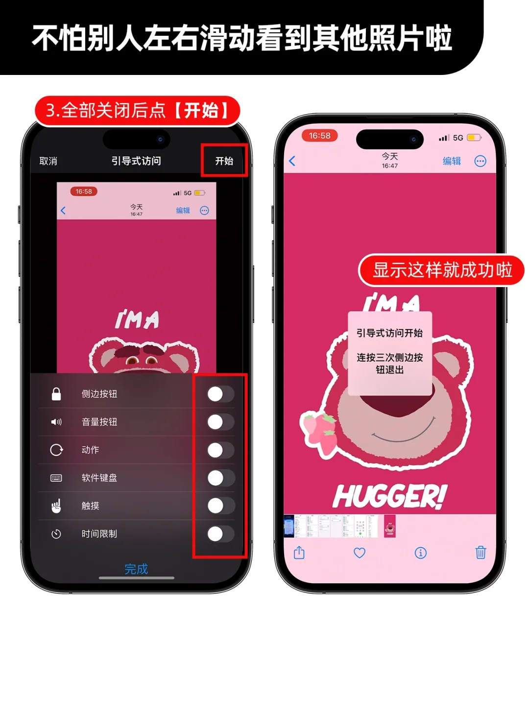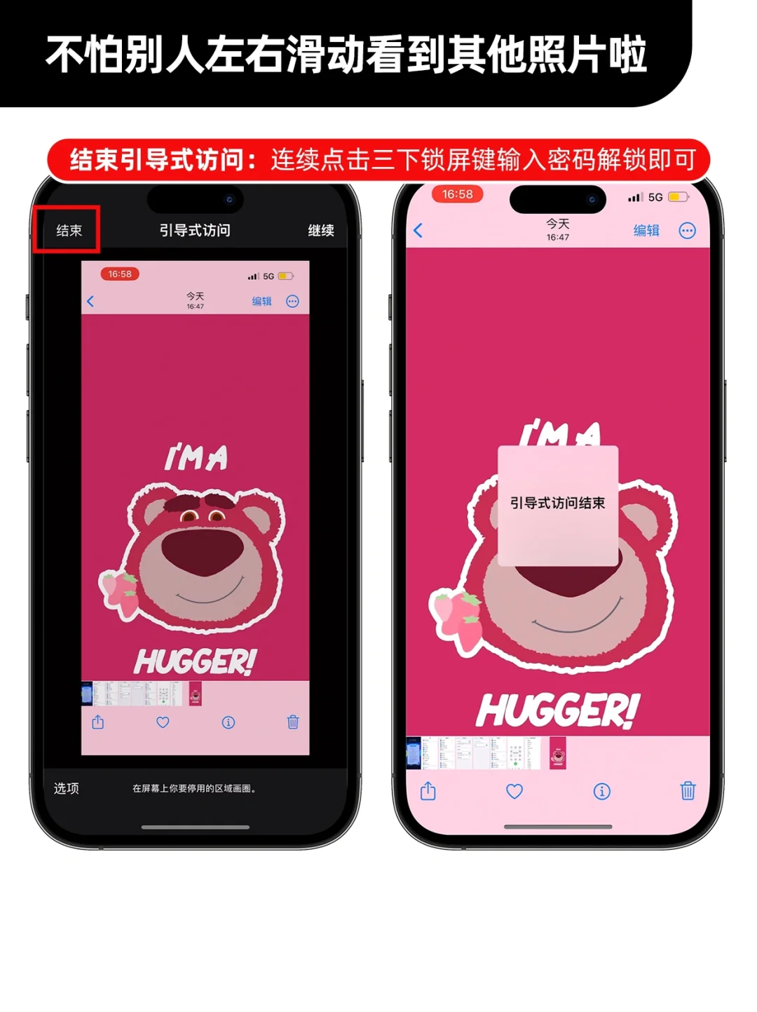 来来来!教你开启苹果相册防偷窥模式 不仅是相册其他信息也能很好地保护[赞R] 我们偶尔会有外借手机的情况 但是又不想所有应用都能被别人访问 这个时候就可以打开[向右R] 引导式访问 对方就只能在固定页面使用啦~