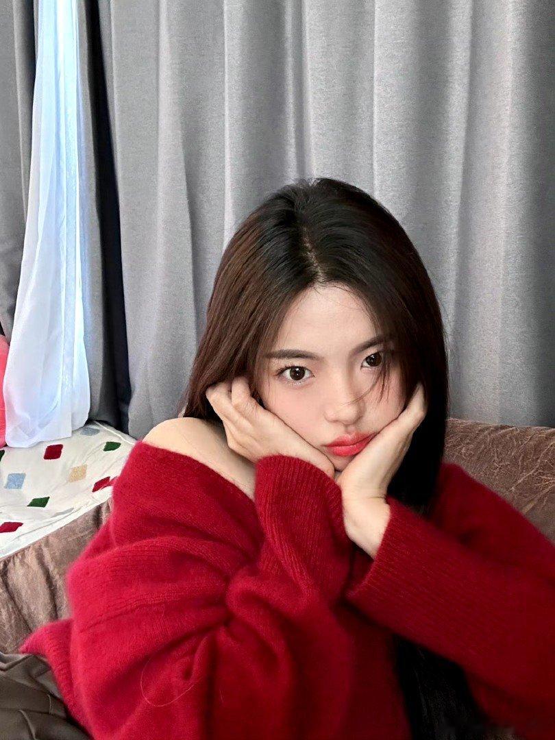#杨超越立冬照##杨超越红色露肩毛衣# 立冬高质量营业[哇]