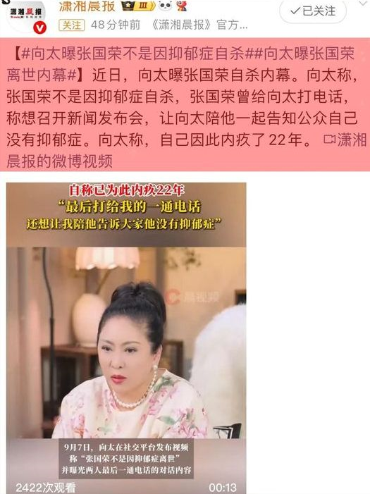 二十二年过去,关于“哥哥为啥走”的版本比TVB剧还多:抑郁症、中邪、入戏太深、情变、投资失败……年年辟谣年年传,越传越邪乎。就在大伙儿快把故事背熟时,向太突然在直播间抹泪:“他最后那通电话打给我,凌晨五点,哭着说‘我没病’!”一句话炸懵全网,可秒被网友揪出漏洞:“坠楼明明是傍晚!”时间线拧成麻花,到底谁在记错?还是有人故意把凌晨当傍晚,把悲剧熬成一锅回魂汤?