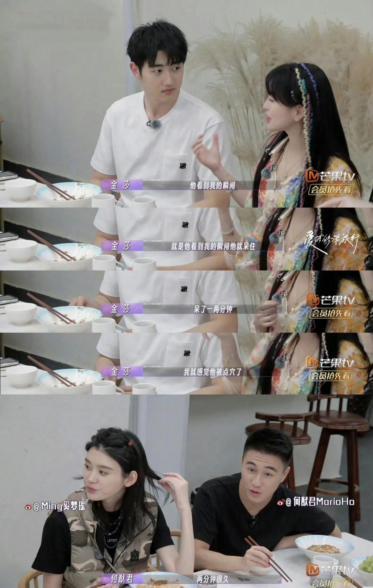 真让何献君钢铁直男笑死了! 这一波大型打假现场让人对何献君刮目相看[左捂脸]这钢铁直男瞬间有点可爱! 金莎一直在说小男友对她怎么一见钟情,怎么用心给她做饭,这些话让何献君震惊不已,频频质疑真假! 其实何止何献君质疑,想必其他人也觉得不可思议吧,只是没人说出来拆台[左捂脸]。 他这一举动反而得到网友们的赞许,觉得他是个敢发声的人! 网友们觉得金莎确实恋爱脑有点过头了!你们觉得呢?#金莎被男友气哭# #金莎官宣男友# #明星热点爆话#