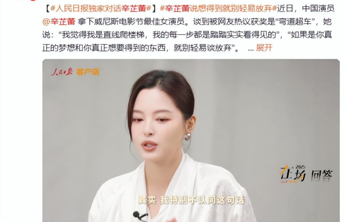 9月17日,《人民日报》更是对辛芷蕾进行了专访,从国家层面上承认了辛芷蕾在威尼斯电影节上取得的影后荣誉。