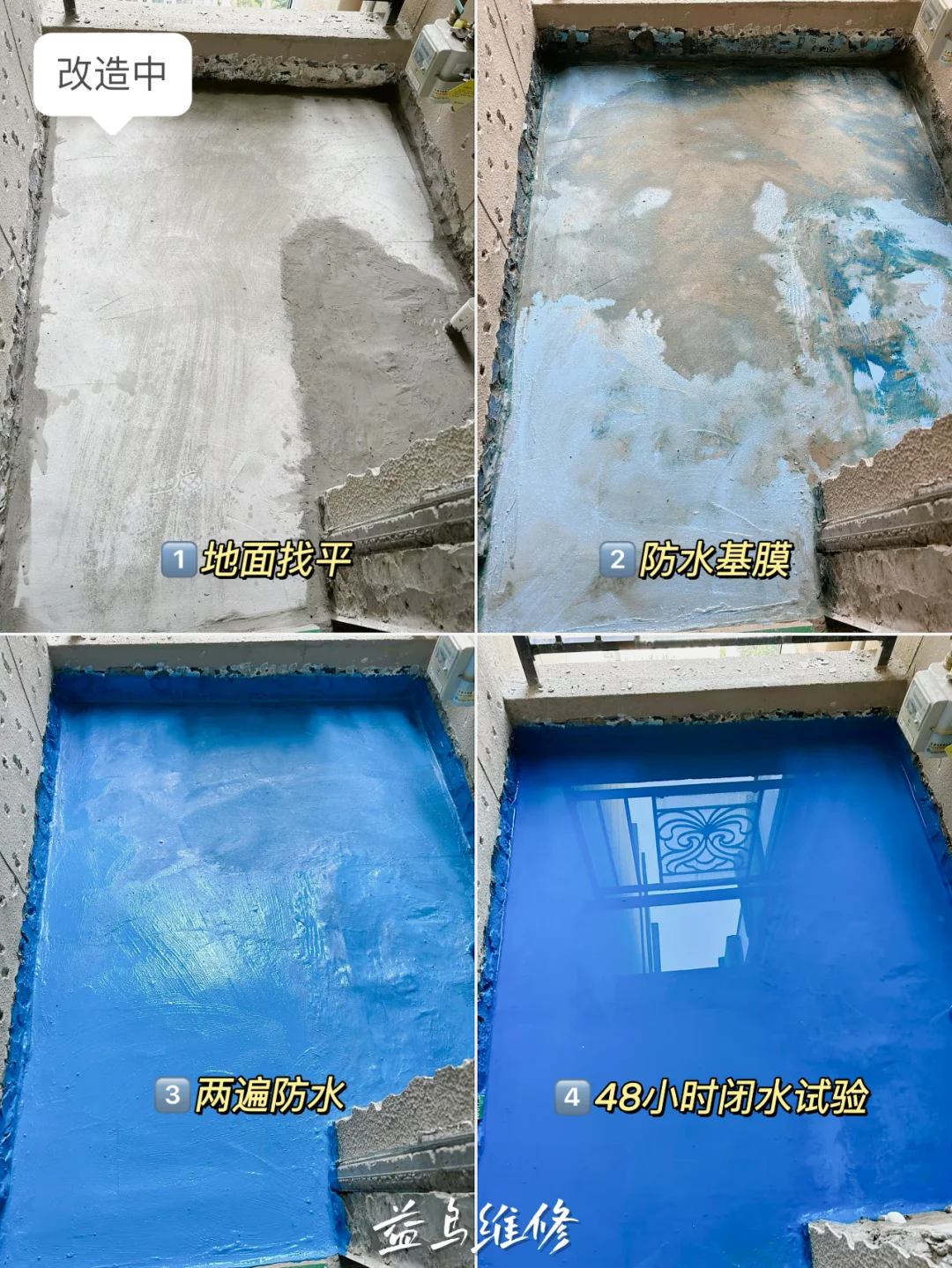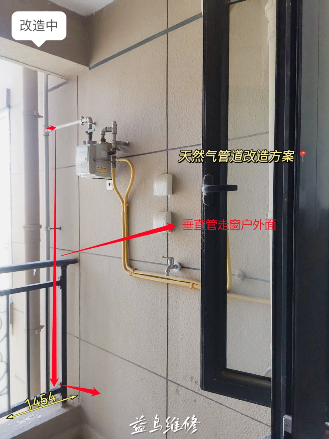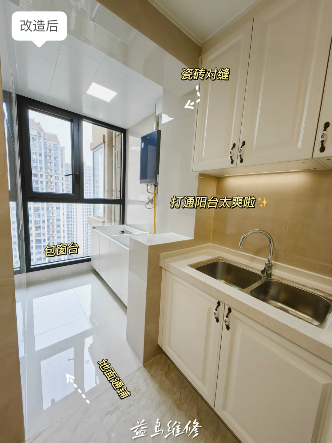 ⑤生活阳台封窗(玻璃需要给燃气管道开孔),贴砖前完成即可