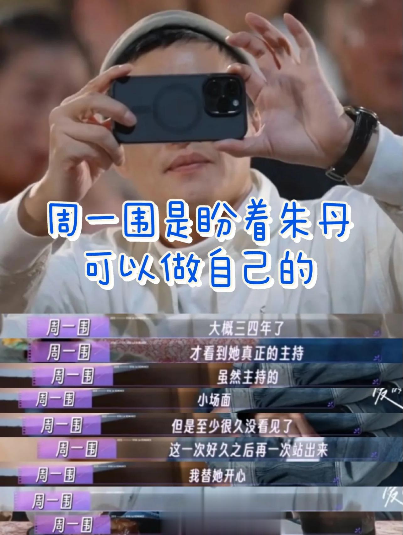 你们去看综艺正片,朱丹啥也不会干,这不会那干不好的,然后什么事情都喊周一围来帮忙,朱丹就动嘴皮子夸为主老公好厉害,老公好能干,老公好帅,周一围情绪稳定一点也不烦就卡卡干活还各种照顾朱丹,真的很好!!好有爱的一对看得我一顿姨母笑[跪了]