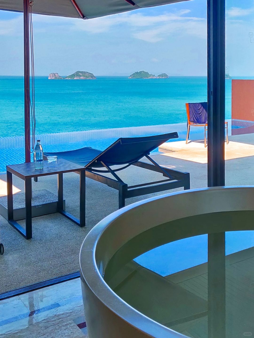 房间真的太赞了,由于是一栋一栋的独栋别墅,房间里隐私性超级好,然后一早醒来打开落地窗,泡在圆形浴缸或者瘫在床上都可以一眼吧大海尽收眼底。