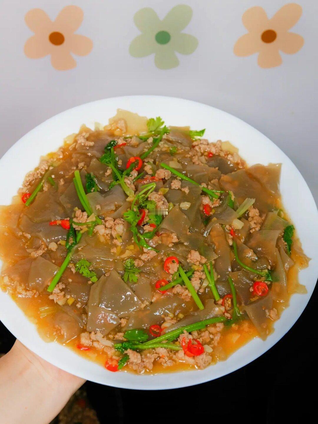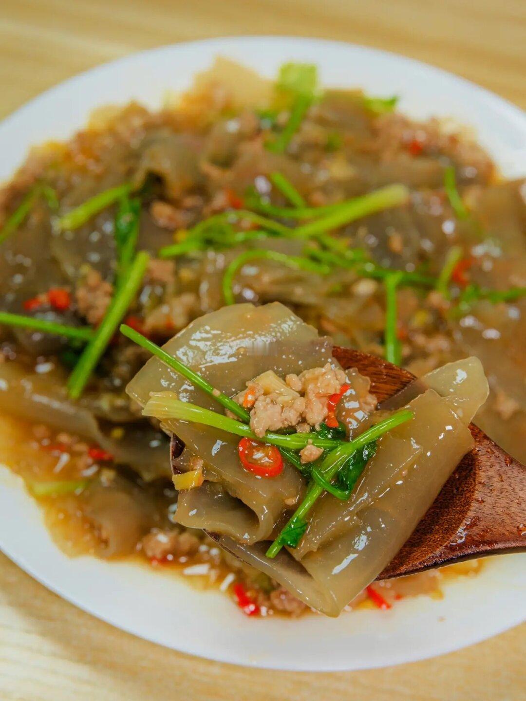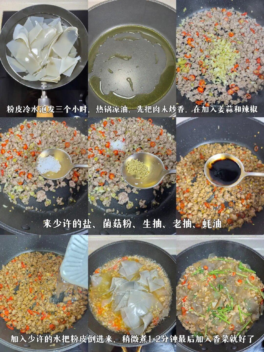 粉皮肉末真的是很多湘菜馆的招牌菜呀!又好吃又下饭,想偷懒时还能当主食,粉皮软糯Q弹肉末也超级香,辣辣的又开胃,真的太适合冬天吃了。