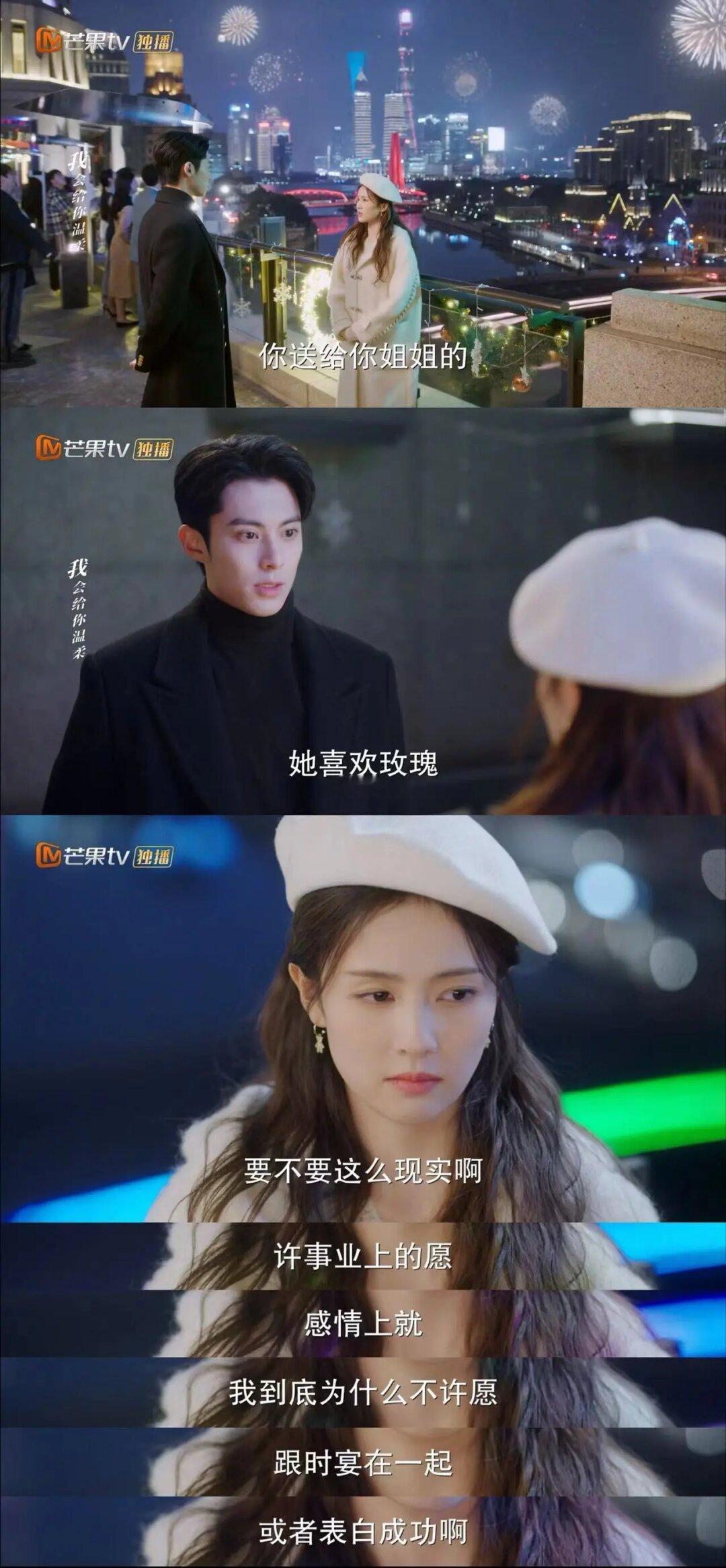时宴特意赶回来陪郑书意跨年,没想到书意的新年愿望里竟然只有电子刊没有时宴,本来想送花表达的时宴默默地收回了本来想说的话,哎!太憋屈了啊!