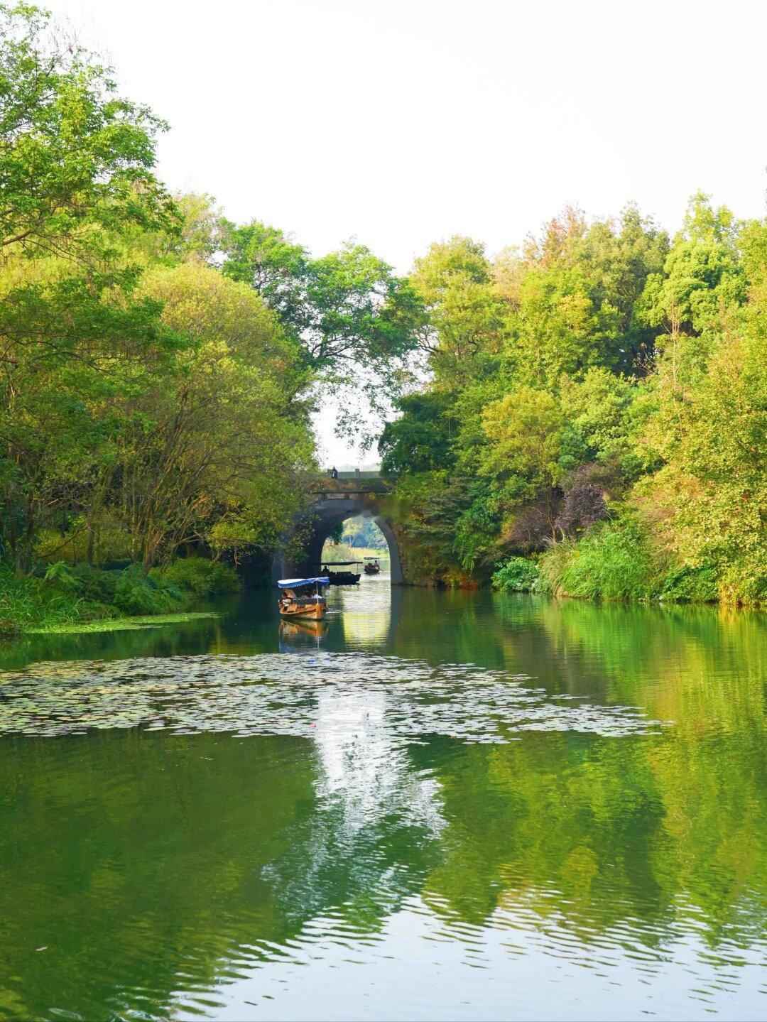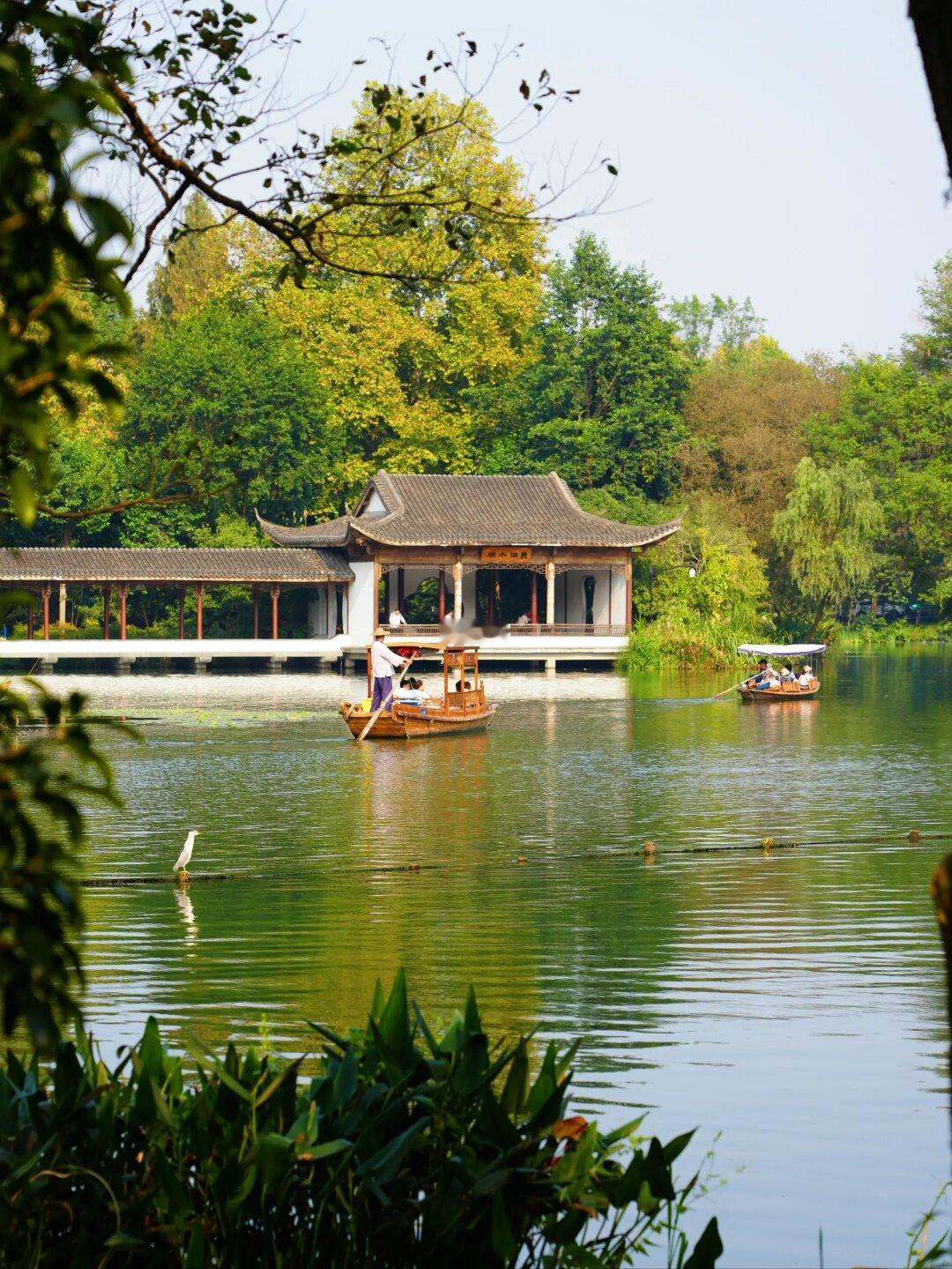 ‼️懒人可走茶叶博物馆和茅家埠这段,然后去曲院风荷4号门开西湖游船,或坐西湖游船到一公园下