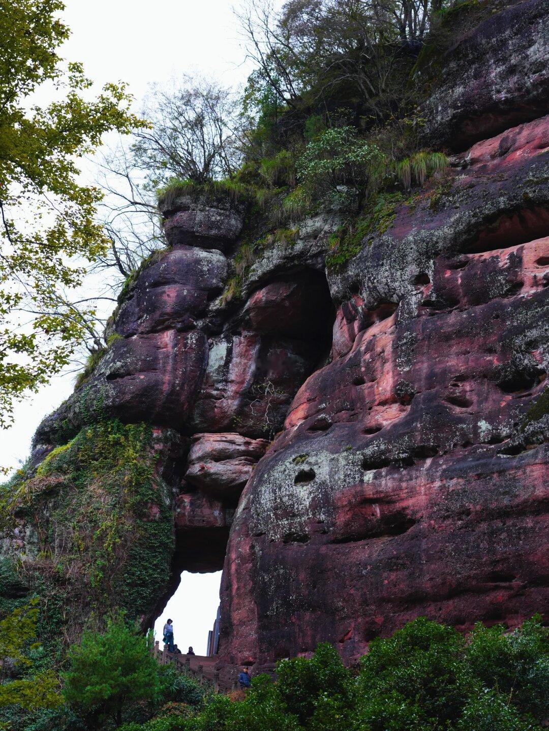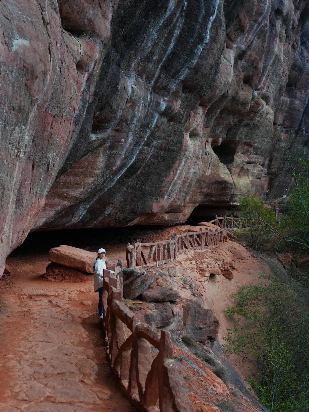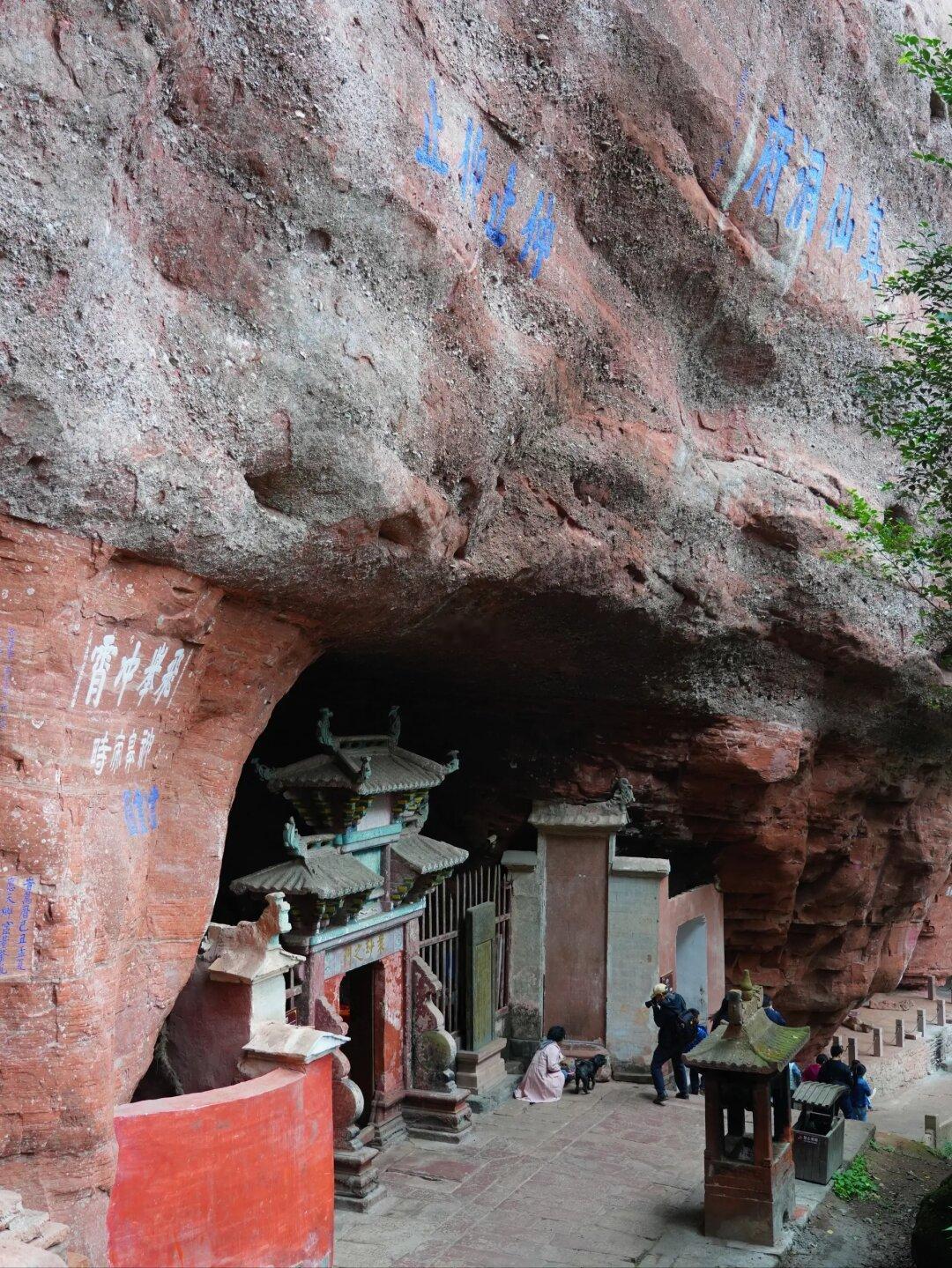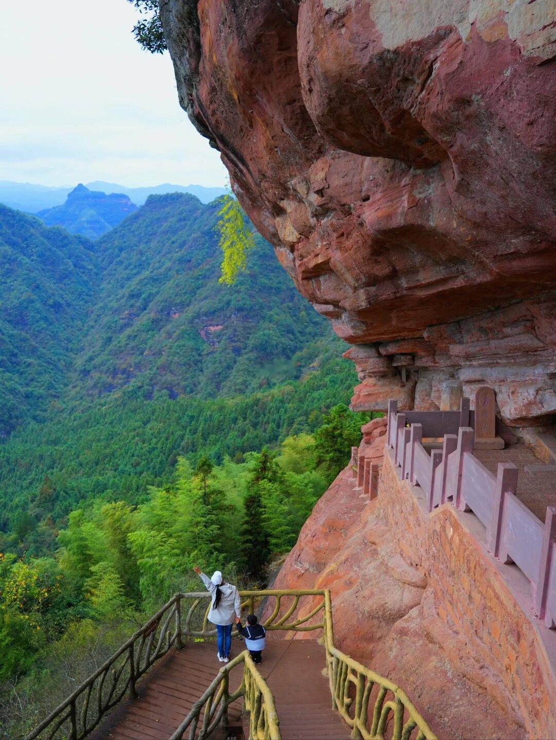 一座镶嵌在丹霞崖壁里的朱砂 色 道 观