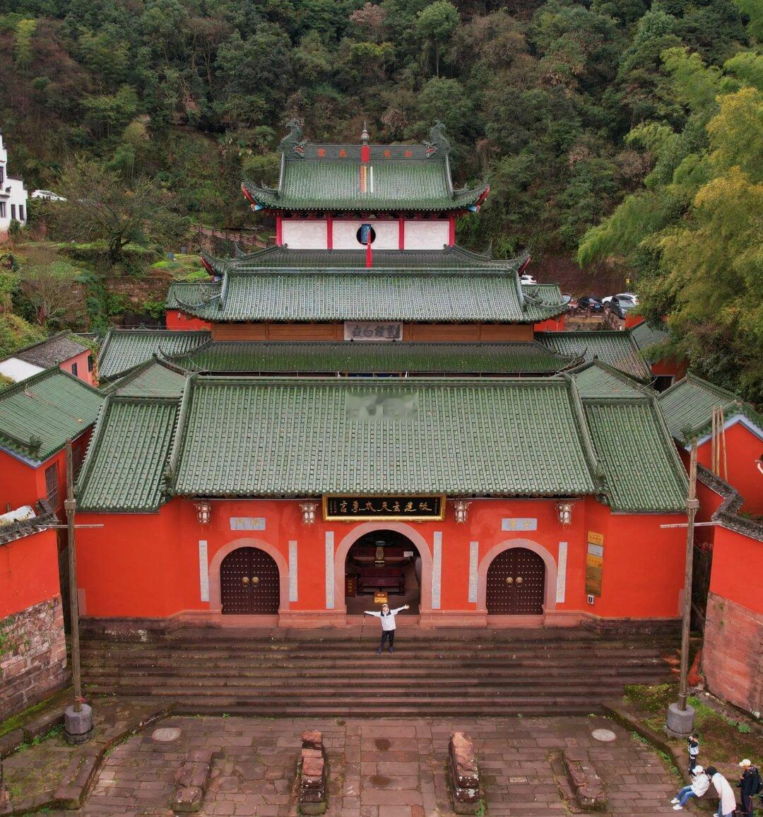 站在飞檐红墙的大殿前,很出片