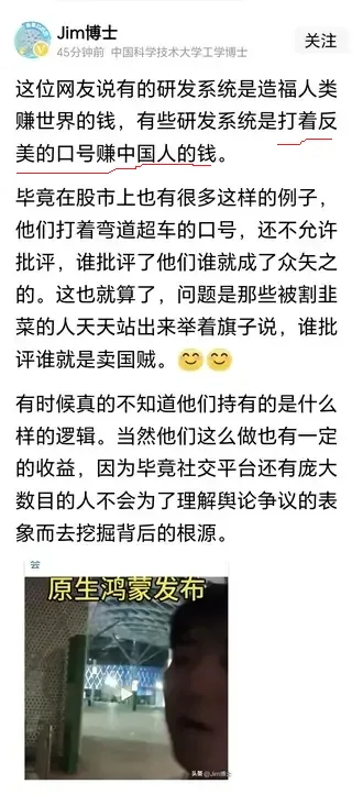 如今,纯血鸿蒙终于发布,那些“有幸”瓜分16亿美元的“专家”又找到了新焦点!
