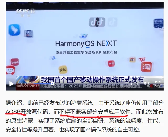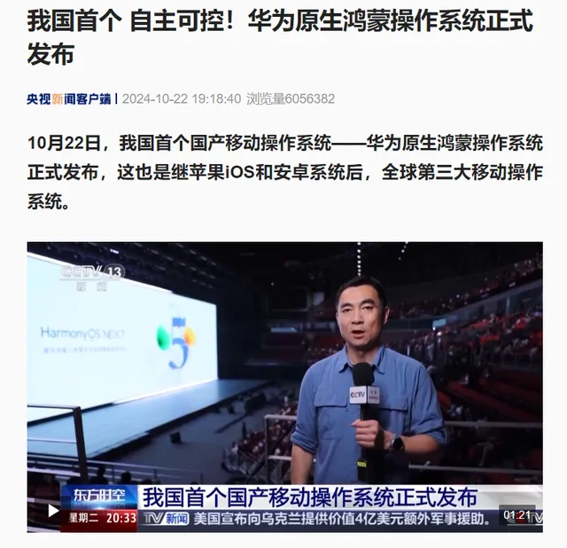 华为原生国产移动操作系统10月22日正式发布,官媒大面积多场合为鸿蒙操作系统(HarmonyOS NEXT)站台报道。