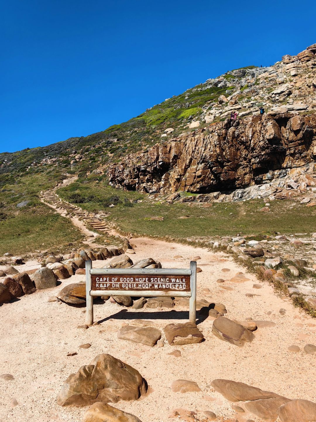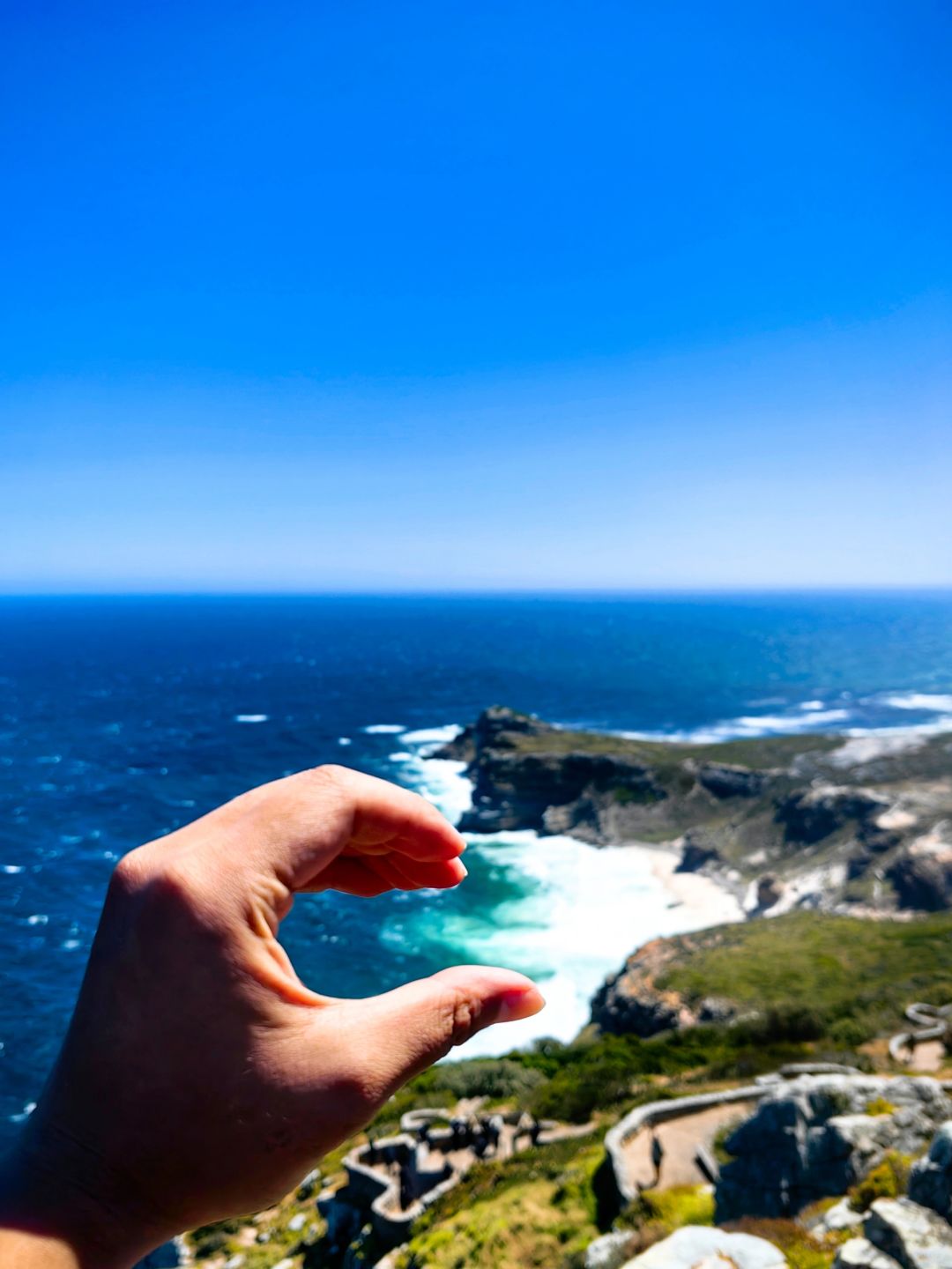 来南非玩,肯定要打卡大名鼎鼎的好望角!但是华人向导告诉我,厄加勒斯角才是非洲大陆最南端,好望角不是,感觉自己初中地理白学了。 首先建议导航“开普角”,因为好望角是国家公园生态保护的很好,一路上看到了很多狒狒(类似我们的峨眉山猴),还有羚羊和鸵鸟,一路上还有很多南非的国花PROTEA盛开的非常漂亮。 买票坐小火车上山,开普敦是和好望角合照的最佳地点! 下山后导航好望角。一定要和好望角纪念牌子(图五)合照,证明自己来过!