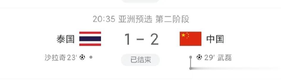 开门红!中国队2:1客场战胜泰国,获得一场胜利!上半场韦世豪助攻,武磊扳平比分,下半场谢鹏飞助攻,王上源进球,中国国足2:1反超泰国,最终2:1战胜泰国!恭喜中国男足!希望再接再厉!感谢远征泰国的球迷!#国足的拼劲# #中国足球之路# #想对中国男足说#