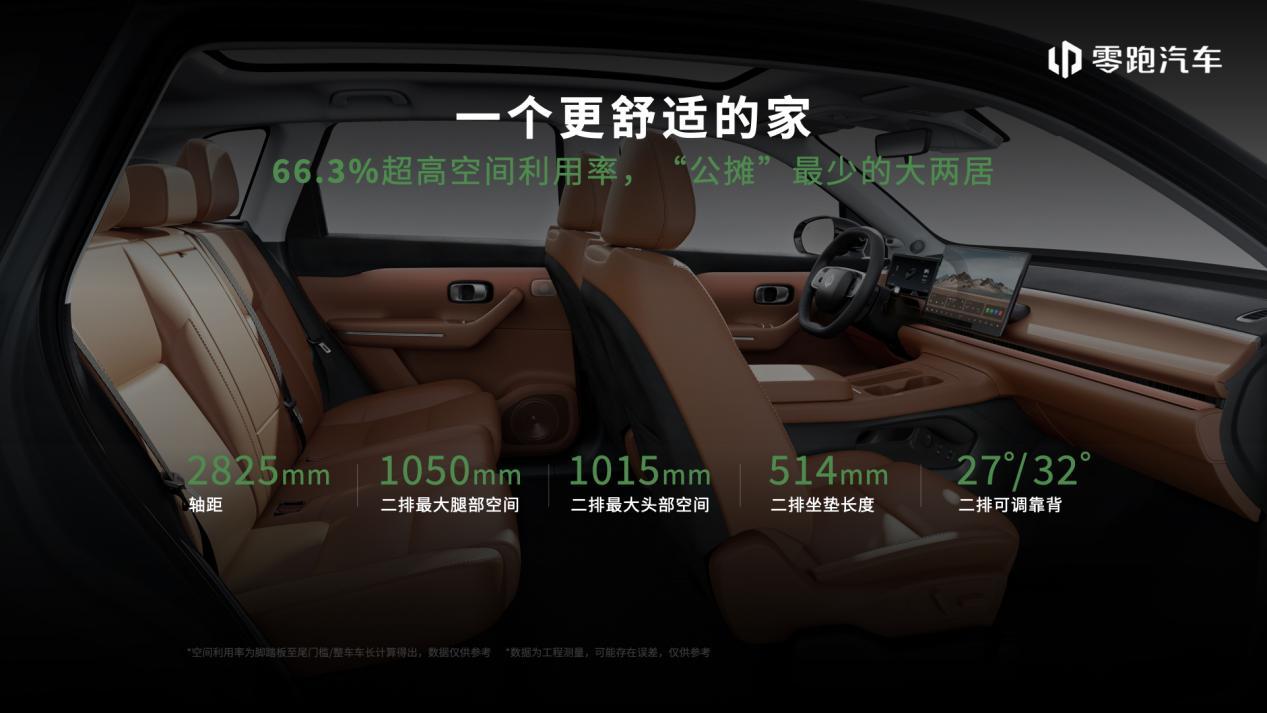 零跑C10亮相广州车展,空间成最大亮点,真是逆天? 此前,零跑C10已在慕尼黑车展首发亮相,而此次广州车展,零跑C10则是在我们国内进行了首发亮相。除了采用全新的外观及内饰设计外,空间也成为了一大亮点。 在尺寸上,零跑C10坐拥4739/1900/1680mm的车身尺寸和2825mm的轴距, 有着同级最大轴长比。得益于工程师对其空间上的优化,使得内部空间利用率高达 66.3%,足以媲美同级豪华SUV奔驰GLC(66%)。另外作为一款面向全球家庭的 SUV,零跑C10第二排腿部最大空间1050mm,第二排坐垫长度 514mm,以身高1.8m的体验者为例,后排腿部空间超过了两拳,头部空间同样超过1拳,乘坐空间领先同级。 此外后排座椅可实现 6:4 放倒,全部放倒后堪比双人大床房,对于户外旅行、搬运行李物品等多种用车环境下,零跑C10都能够满足用户对于空间的需求。而2.1 ㎡超大全景天幕,采光面积高达 1.06 ㎡,让车内视野更加通透,即便满载时也不会感到压抑。 总的来说,作为家用SUV而言,不管是空间利用率还是乘坐舒适性,零跑C10做得都相当到位。