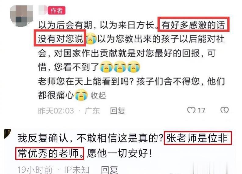 很多家长得知这个消息,也很震惊与难过,他们在网上哀悼张老师,表达着对他的感谢。