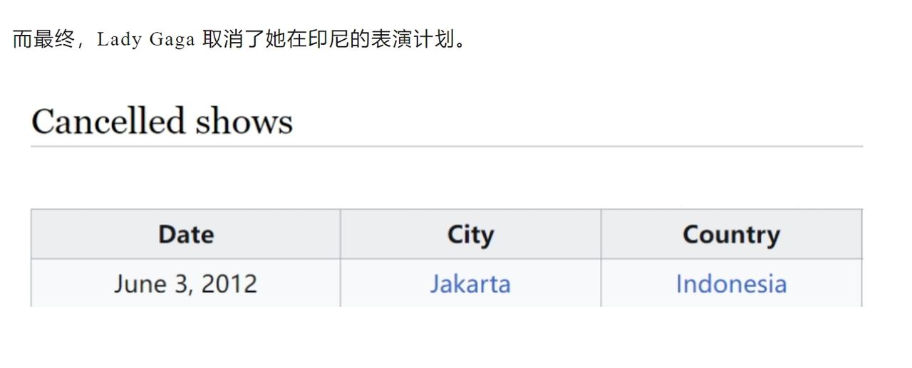 2012年的时候 Lady Gaga 的 Born This Way Ball 演唱会巡演官宣了印度尼西亚雅加达站的表演,随后民众自发上街,举起了“Lady Gaga 给我下地狱”(Lady Gaga Go To Hell)的抗议牌子,抗议 Lady Gaga 到印尼表演。 而最终,Lady Gaga 取消了她在印尼的表演计划。 因为遭到死亡威胁,Lady Gaga 将所有售出的门票进行了退票处理,没有踏入印度尼西亚的国境内。 因为 Lady Gaga 知道,惊鸿舞是要跳给心爱的男子看的,被这样抵制她的确是不必再舞了。