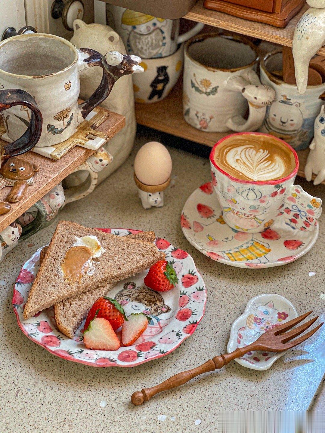 周末好呀!早餐简单吃[哇],带着小狮子包包出去玩。喜茶联名noritake,很好