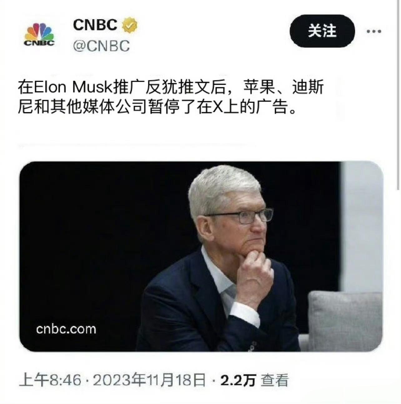 马斯克因为“支持反犹言论”,包括苹果、索尼、华纳、IBM、迪斯尼、狮门影业等多家公司宣布停止对推特(X)平台的广告投放。